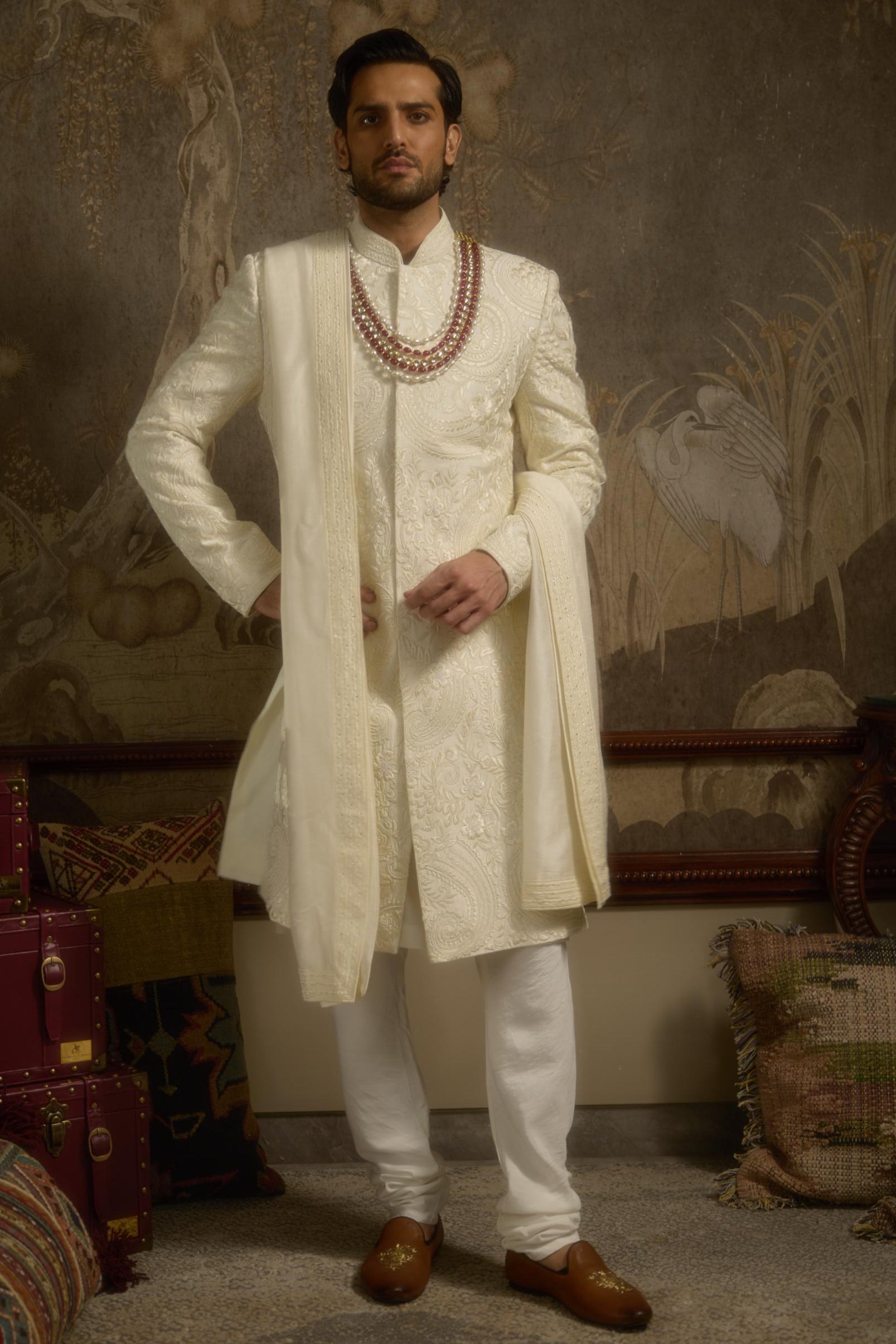 Components: 4 pieces (Sherwani, kurta, stole, chudidar)