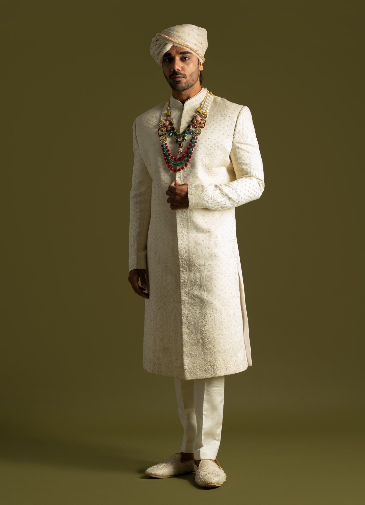 Components: 4 pieces (Sherwani, kurta, pant, dupatta)
