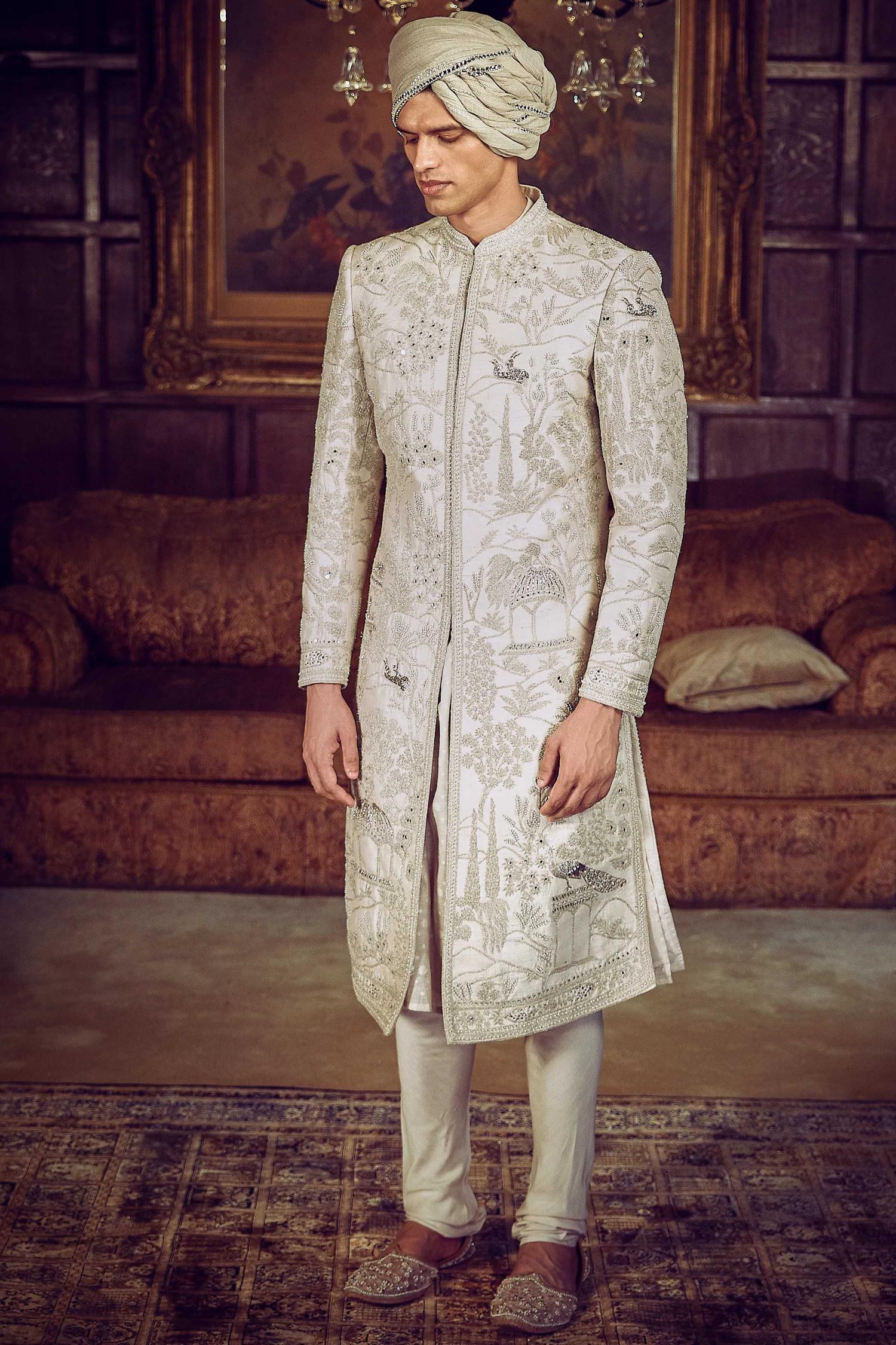 Components: 4 pieces (Sherwani, kurta, churidar, stole)
