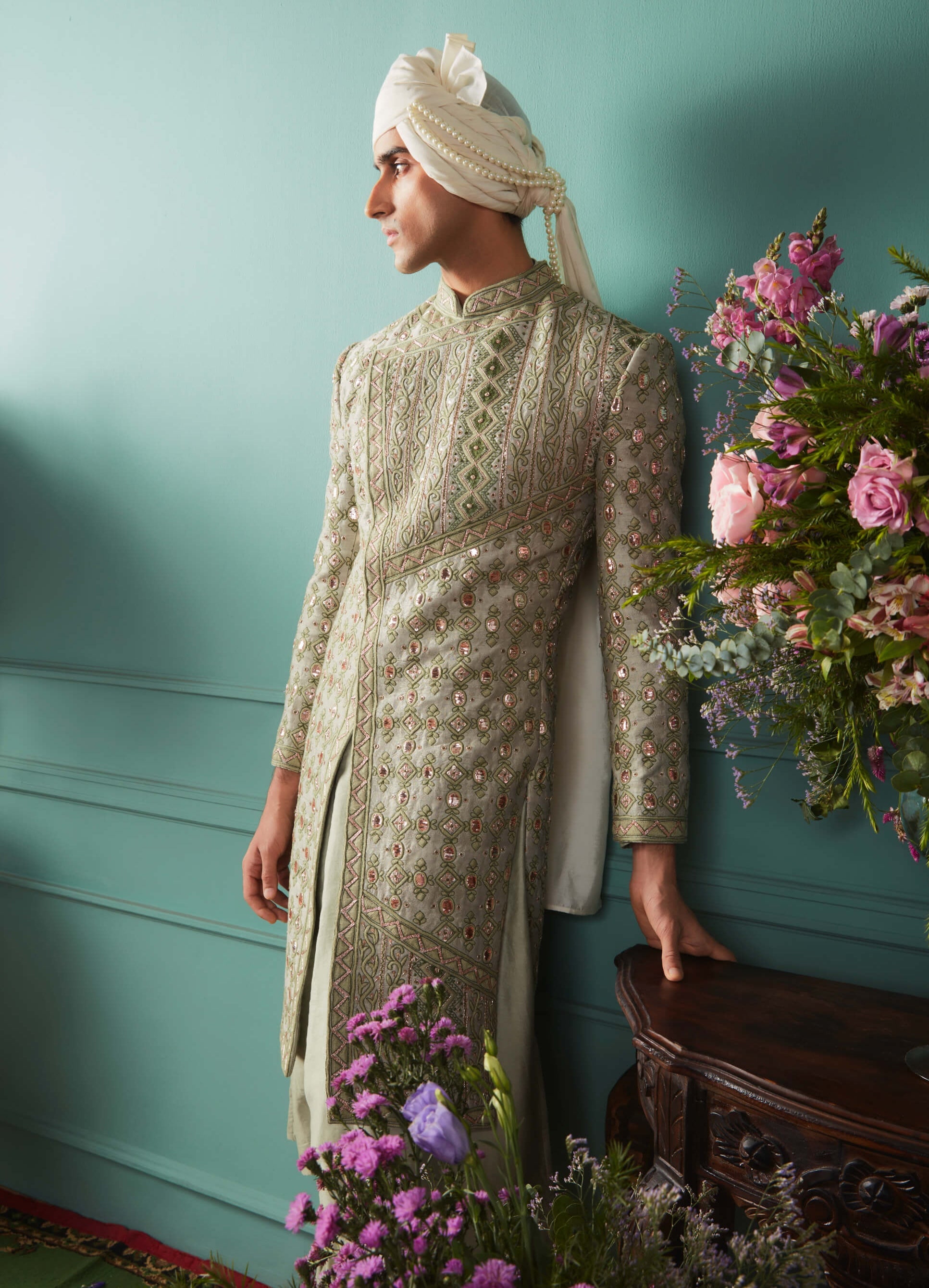 Components: 4 pieces (Sherwani, kurta, dupatta and pant)