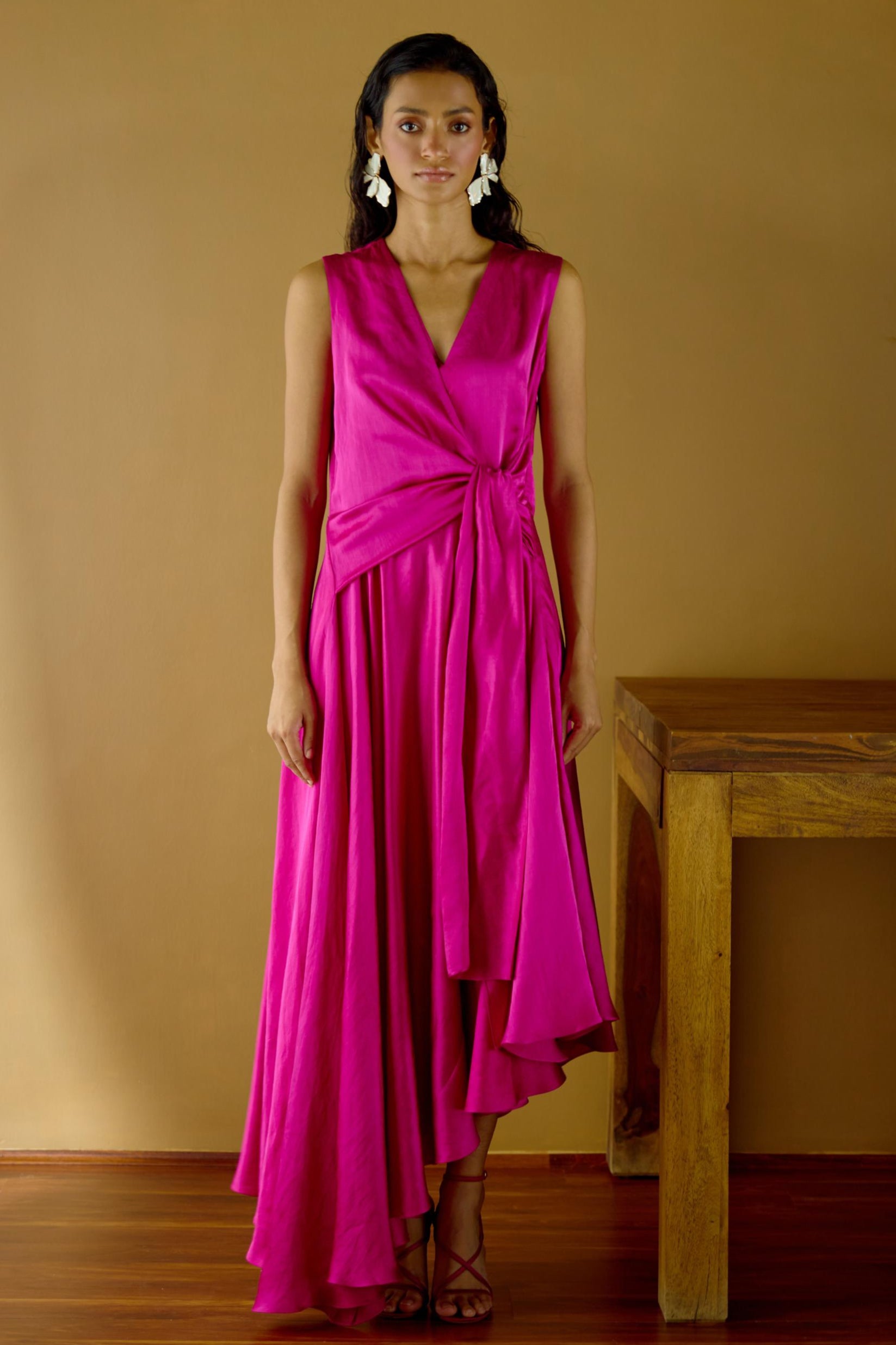 Pink resort-day asymmetrical tie-up dress embodies bold femininity with a touch of playfulness. The asymmetrical cut adds dimension and drama, while the tie-up detail introduces versatility in styling. Perfect for a Gala, this tie-up dress is designed to stand out with its flattering silhouette and romantic pink hue. Crafted from lightweight fabric, it allows effortless movement while retaining couture-inspired charm. Ahuja’s tie-up dress is ideal for women who appreciate contemporary elegance with a functional twist, offering adaptability from glamorous evenings to resort-inspired festivities. With its unique construction and chic detailing, the pink asymmetrical tie-up dress captures the essence of confident, modern fashion, making it a standout piece for special occasions.