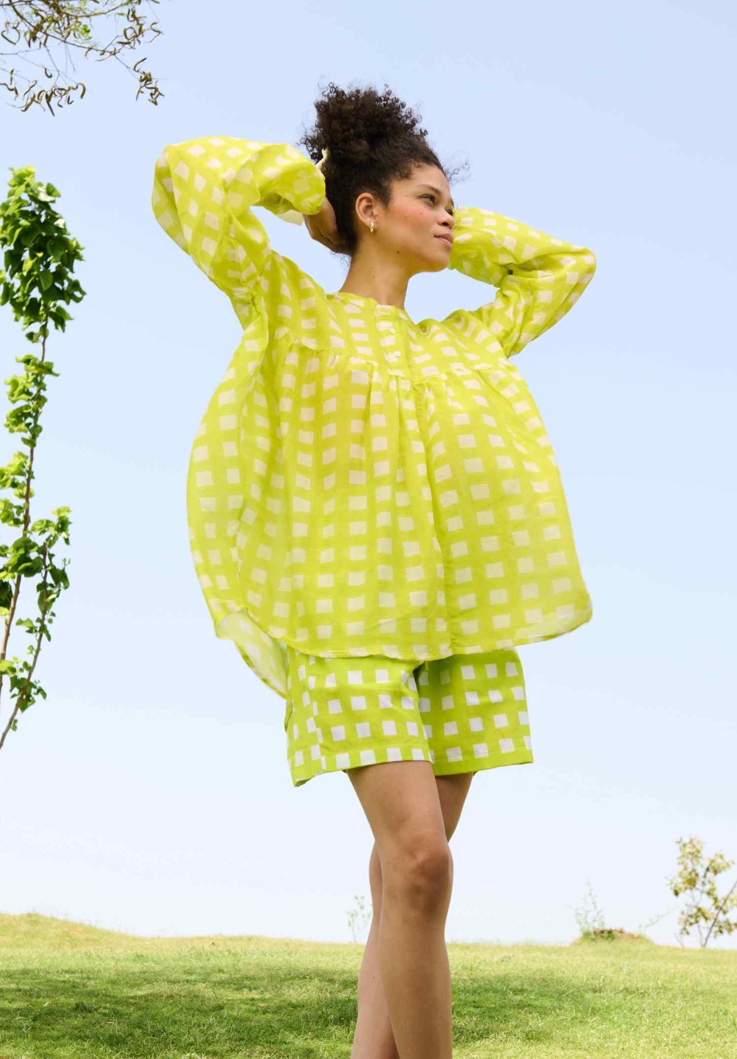Step into effortless style with the Lolo Coord Set, crafted from our premium linen-cotton blend for ultimate comfort and breathability. This chic set features a button-down top adorned with a fresh lemon checks print, paired with coordinating leisure shorts for a perfectly relaxed look. Ideal for sunny days and casual outings, the Lolo Coord Set seamlessly blends vibrant patterns with luxurious fabric, ensuring you stay cool and stylish all day long.