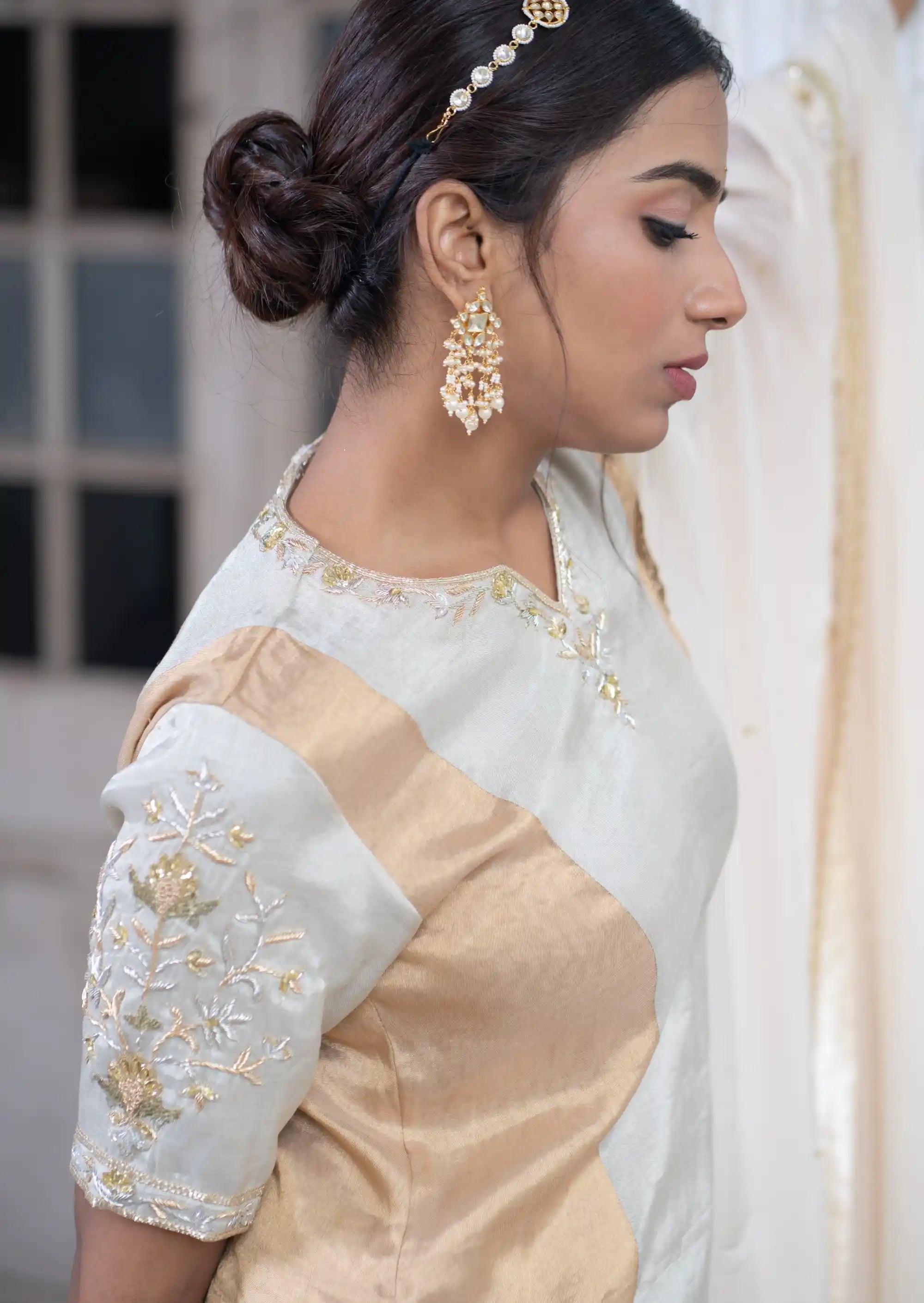 Fabric: Gold -silver tissue, gaji silk, organza, shantoon lining