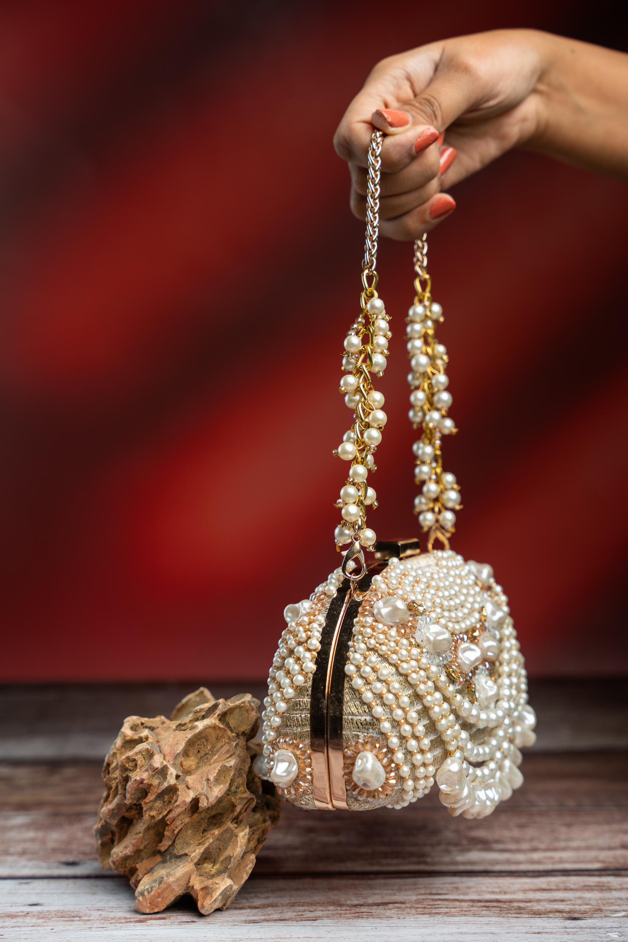 The Multicolor Pearl Adorn Kasse luxury potli bag is tailored for grand festive occasions and wedding receptions. Its vibrant base highlighted with pearl detailing makes this luxury potli bag a striking complement to statement lehenga sets. Perfect for bridesmaids or close family members, the luxury potli bag adds festive glamour with refined craftsmanship.