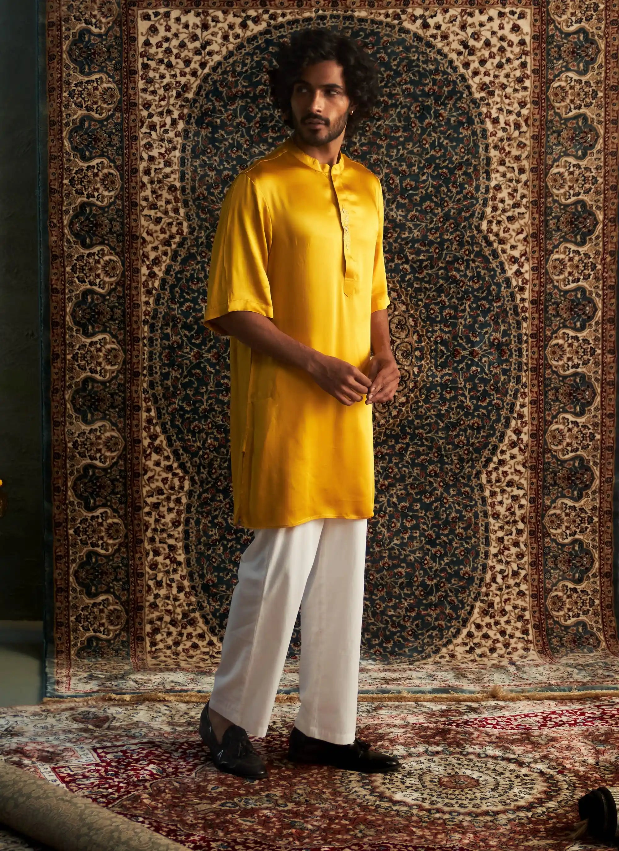 When paired with loose pyjamas, the ensemble effortlessly combines traditional charm with modern flair, all while remaining minimalistic and comfortable. It’s the ideal choice for those looking to make a fashionable statement and celebrate a blend of classic and contemporary style. Perfect for casual outings or festive gatherings, this kurta ensures you express your individuality with ease!