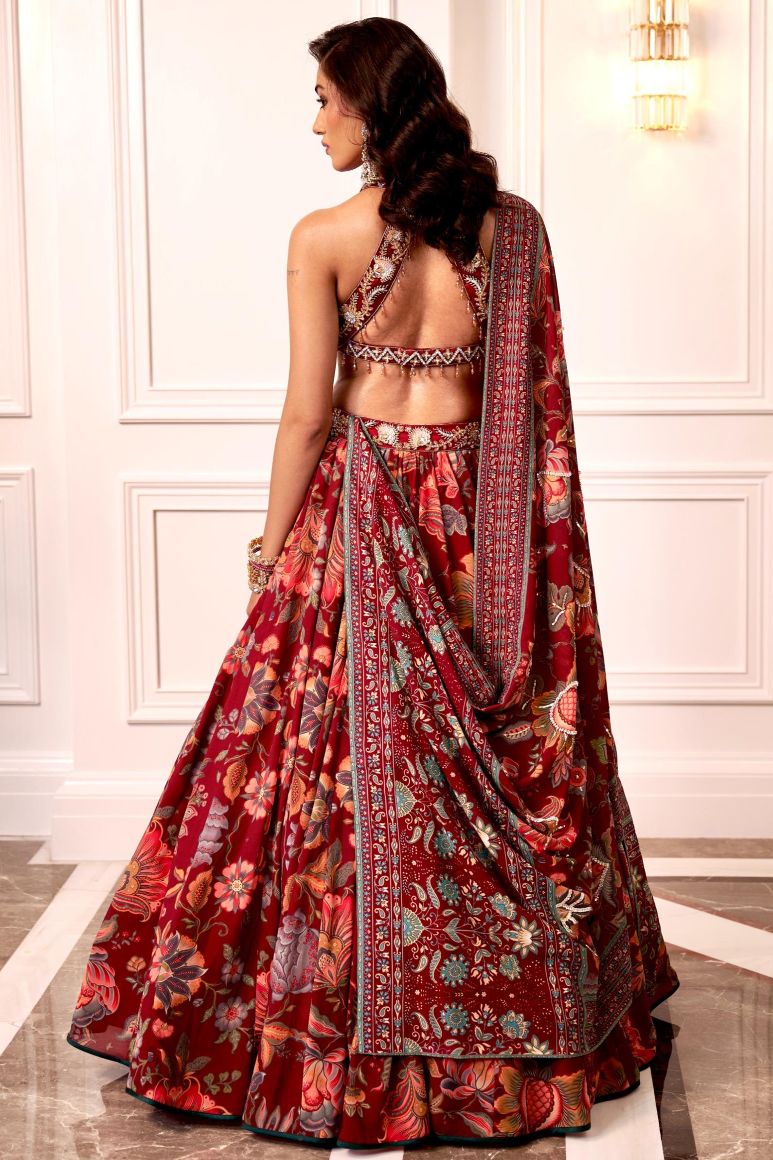 The Maroon Nayira Lehenga Set is a regal ensemble that exudes elegance and cultural richness. Crafted in a deep maroon hue with intricate embroidery, this lehenga is perfect for weddings, festive celebrations, and grand occasions. The luxurious fabric and timeless silhouette make it a standout choice for modern brides and style enthusiasts. Ideal for those who appreciate classic tradition with refined detailing.