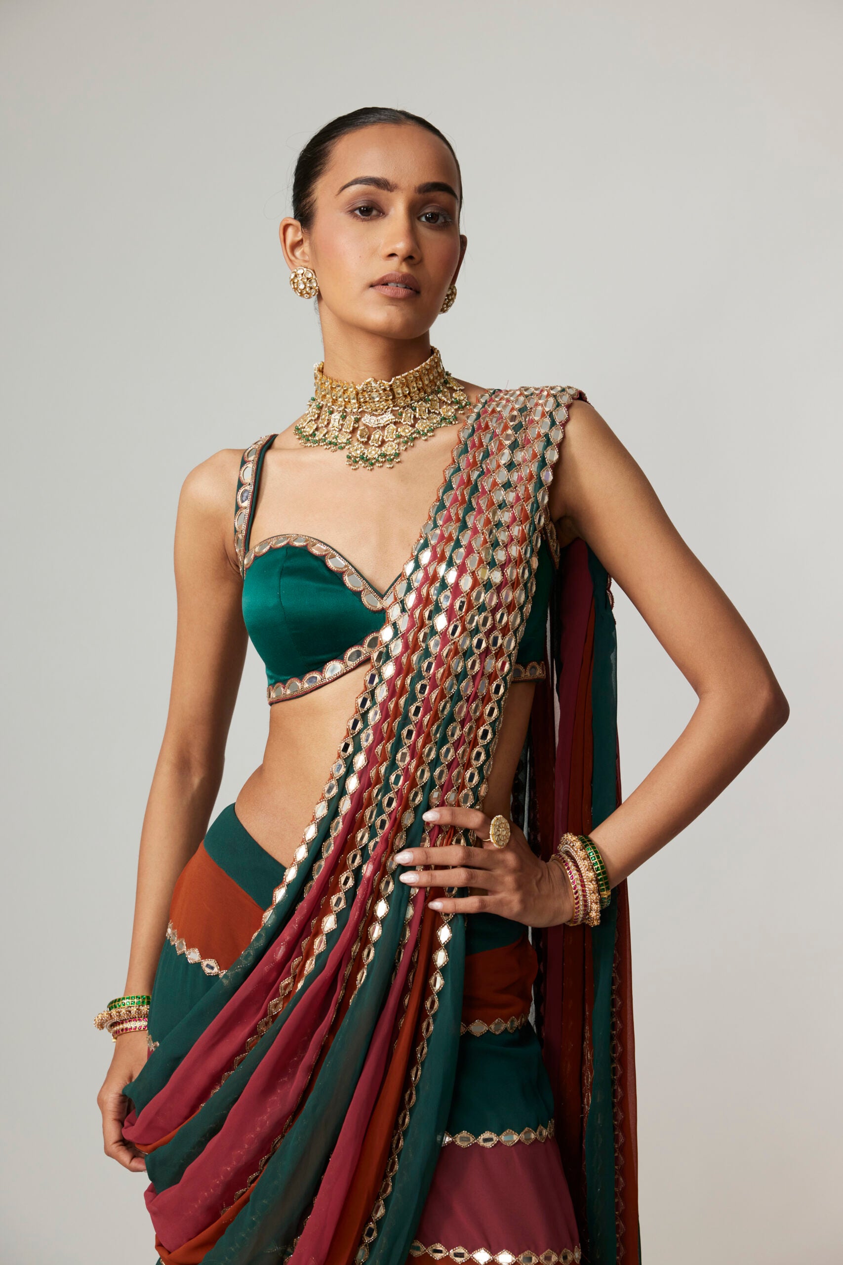 Vvani by Vani Vats, founded in 2015 in New Delhi, celebrates the grandeur of Indian craftsmanship with a contemporary spirit. Fusing intricate mirror work, gota, and age‑old embroidery with playful silhouettes, each piece tells a story of heritage reimagined. Designed for the modern muse who embraces culture with confidence, Vvani offers occasionwear that feels both rooted and radiant.