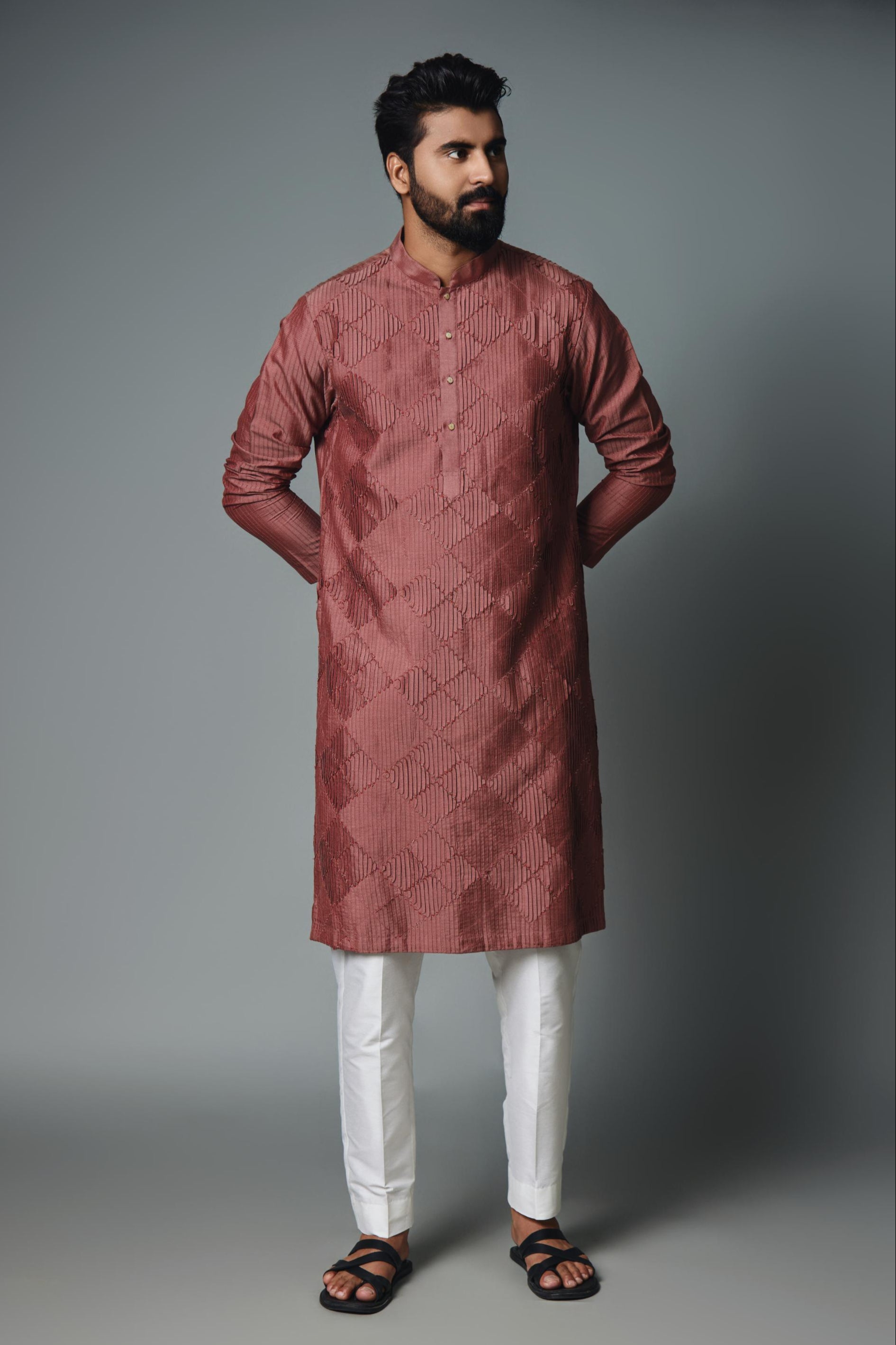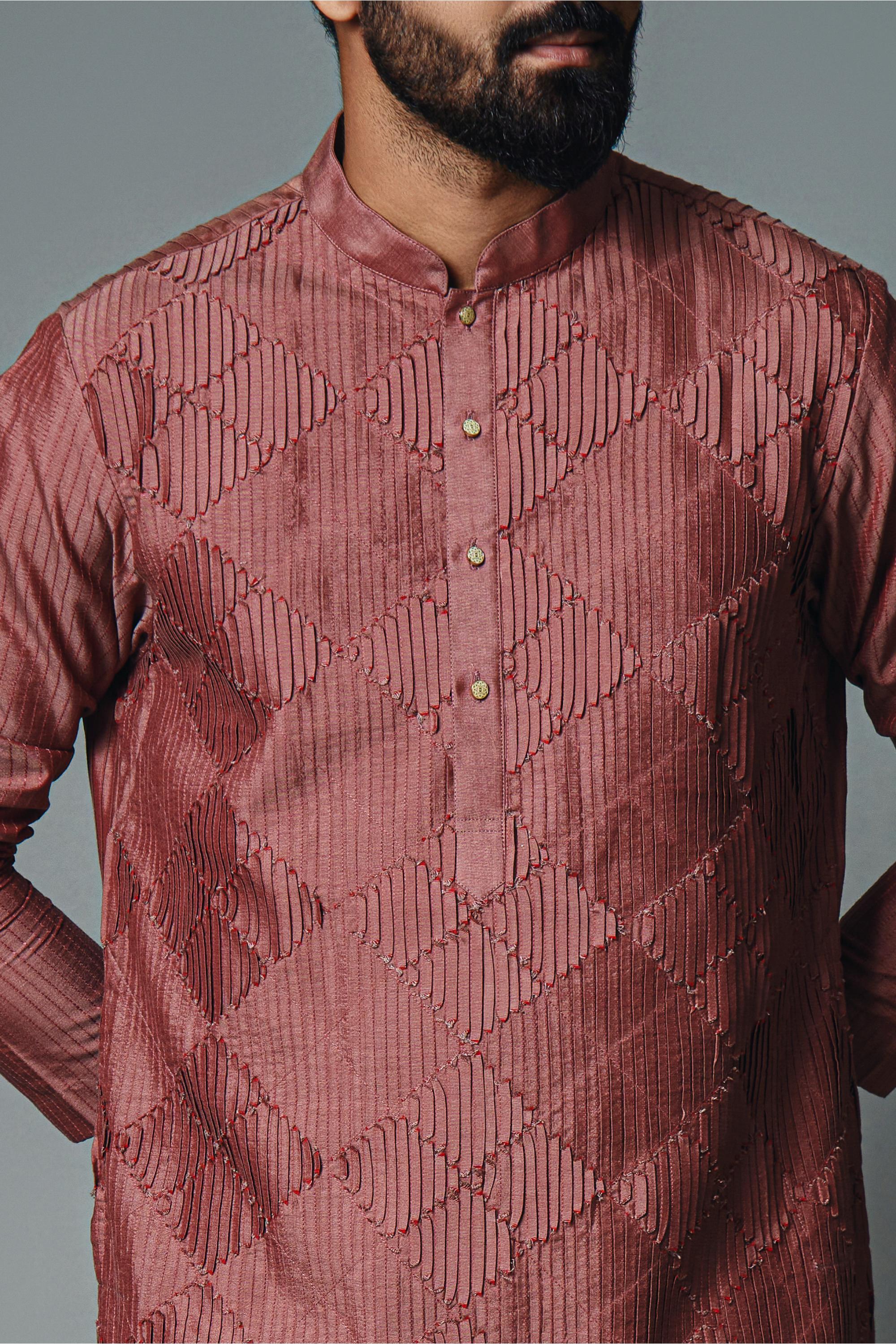 The Maroon Pintuck Kurta with Pant is a timeless essential for the modern Indian wardrobe. Featuring intricate pintuck detailing along the front, this kurta adds depth and texture to a rich maroon base—exuding elegance without excess. Paired with well-fitted pants, this ensemble is perfect for intimate weddings, festive gatherings, or evening celebrations that call for understated sophistication.