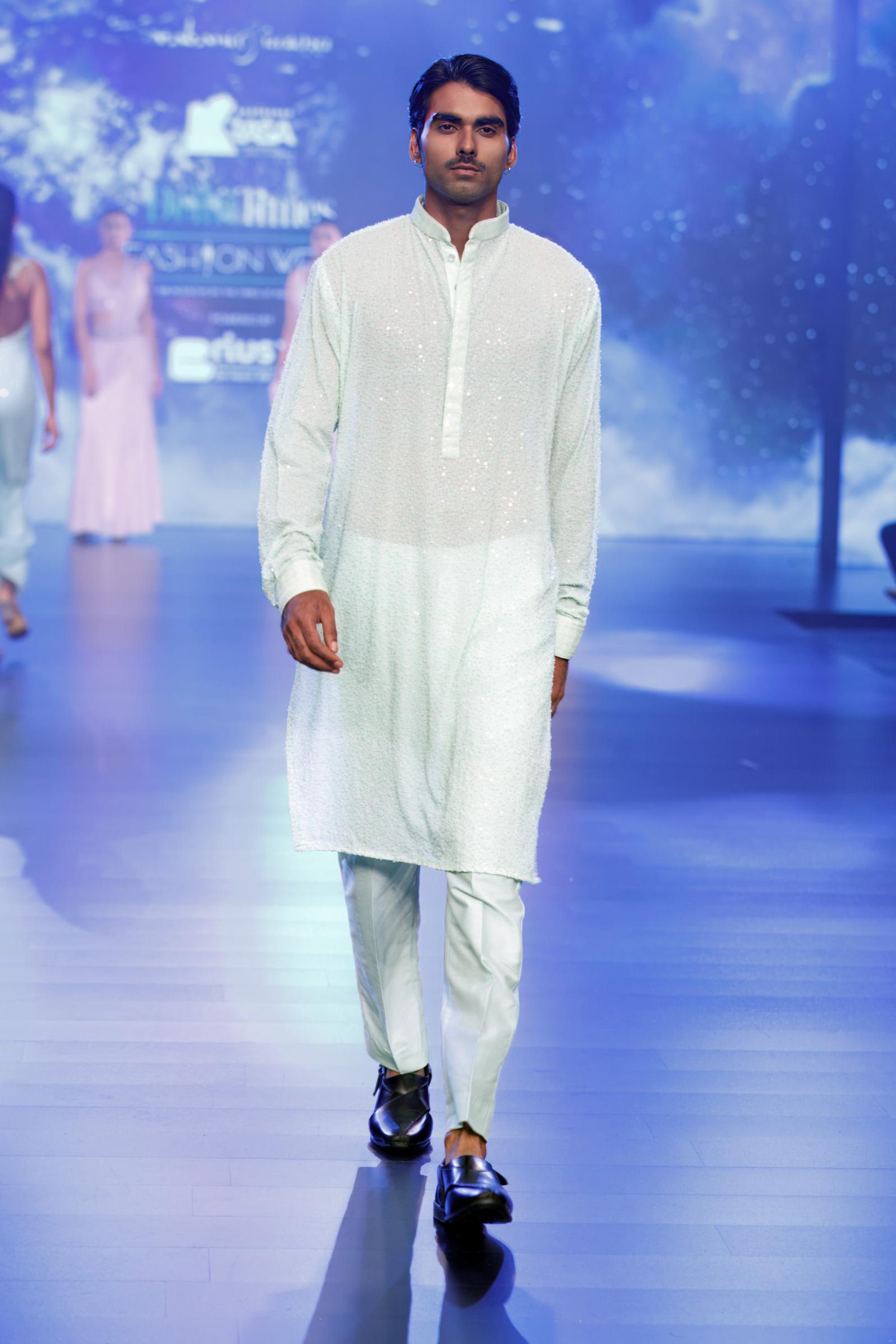 Rabani & Rakha is a renowned design house founded in 1999 by husband-and-wife duo Rahul and Shibani Rastogi, both graduates of Shri Ram College of Commerce, Delhi. Joined in 2001 by Gautam Rakha, a fellow graduate with a Diploma from NIFT, New Delhi, the brand has flourished, known for its exquisite and intricate designs. With accolades like the ‘Prix d’ Indiction’ award in Paris and experience from the studio of Tarun Tahiliani, the team has showcased their work globally, from Hong Kong to L.A. Rabani & Rakha have quickly gained critical acclaim and a discerning clientele, celebrated for their masterful craftsmanship and creative vision.