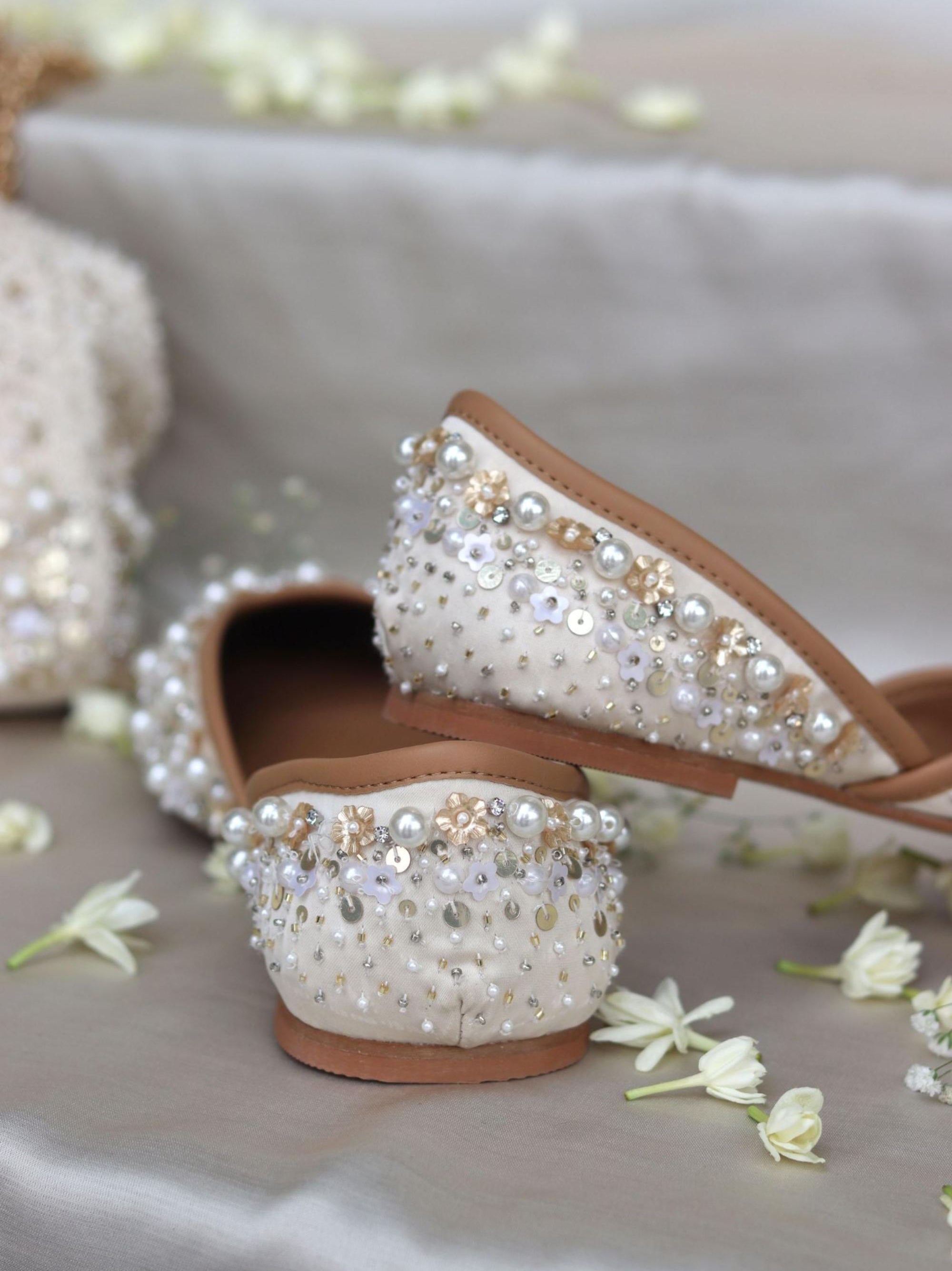 The White Aarohi Vegan Jutti by Mulmul is a perfect marriage of tradition and sustainability. This vegan jutti in a refined white hue exudes sophistication, making it a versatile accessory for festive occasions. Its elegant tone complements vibrant festive outfits as well as pastel ensembles, offering women endless styling options. Whether paired with a lehenga, saree, or a modern Indo-western dress, the White Aarohi Vegan Jutti ensures comfort without compromising on elegance. Its lightweight design is ideal for long celebrations, reflecting Mulmul’s dedication to detail and eco-conscious craftsmanship. Perfect for weddings, receptions, or seasonal festivities, this vegan jutti is an essential footwear piece that brings understated glamour and refined sustainability to every celebration.