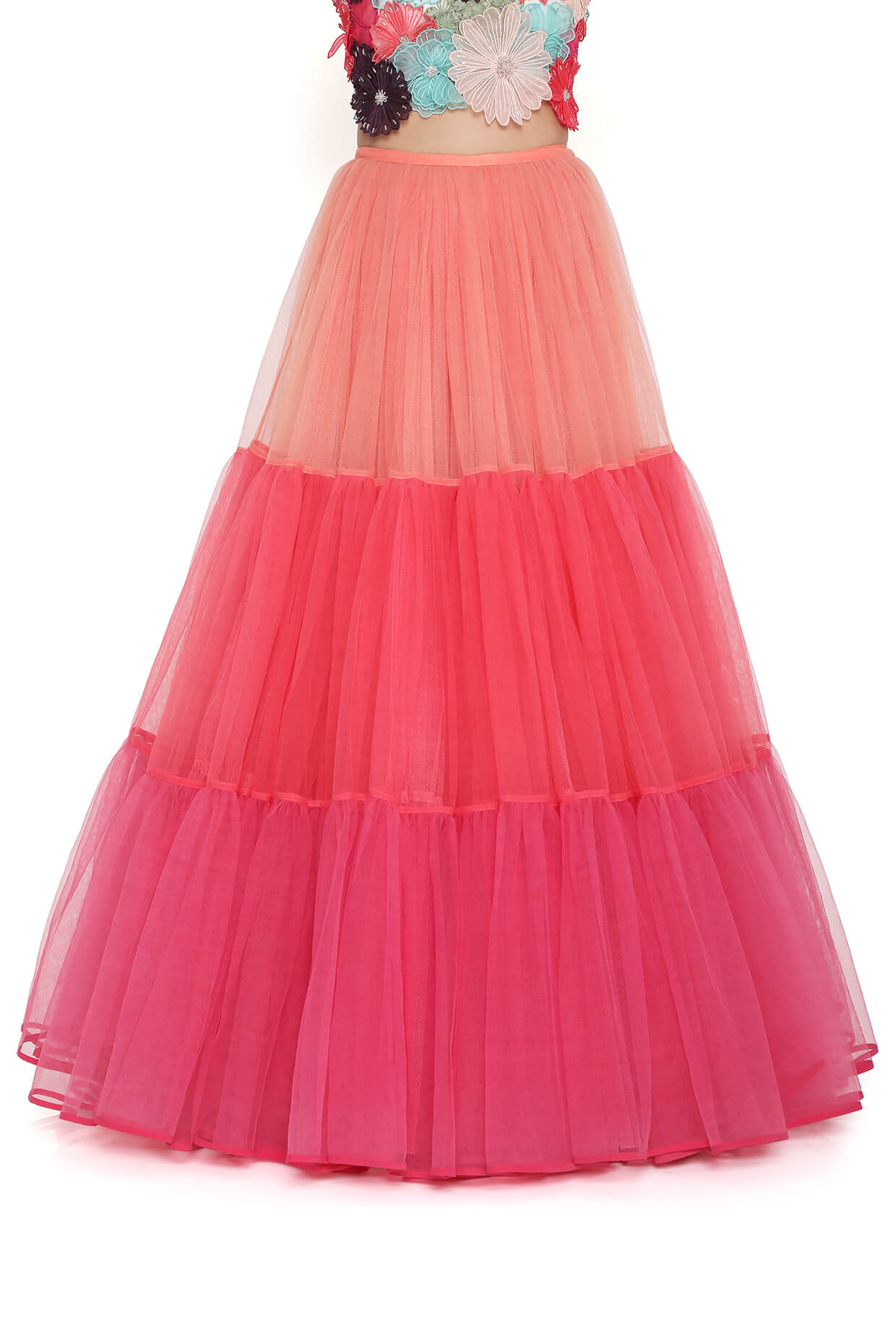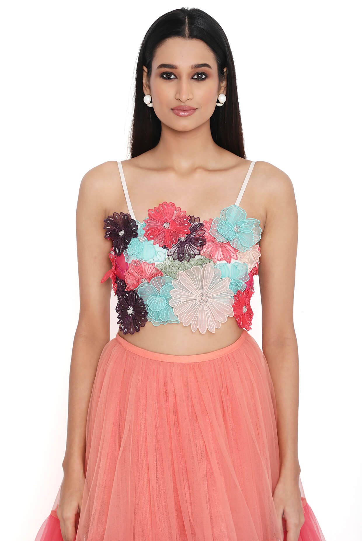 Step into a world of vibrant elegance with our Multicolor Georgette 3D Flower Embroidered Choli and Multi-Color Layered Net Lehenga. This enchanting set features a georgette choli adorned with intricate 3D flower embroidery, adding a touch of floral opulence and texture. The choli’s multicolor design enhances its visual appeal, perfectly complemented by the lehenga’s multi-layered net fabric. Each layer of the lehenga cascades in a spectrum of colors, creating a dynamic and flowing silhouette. Ideal for festive occasions and celebrations, this ensemble seamlessly blends artistic craftsmanship with contemporary style.