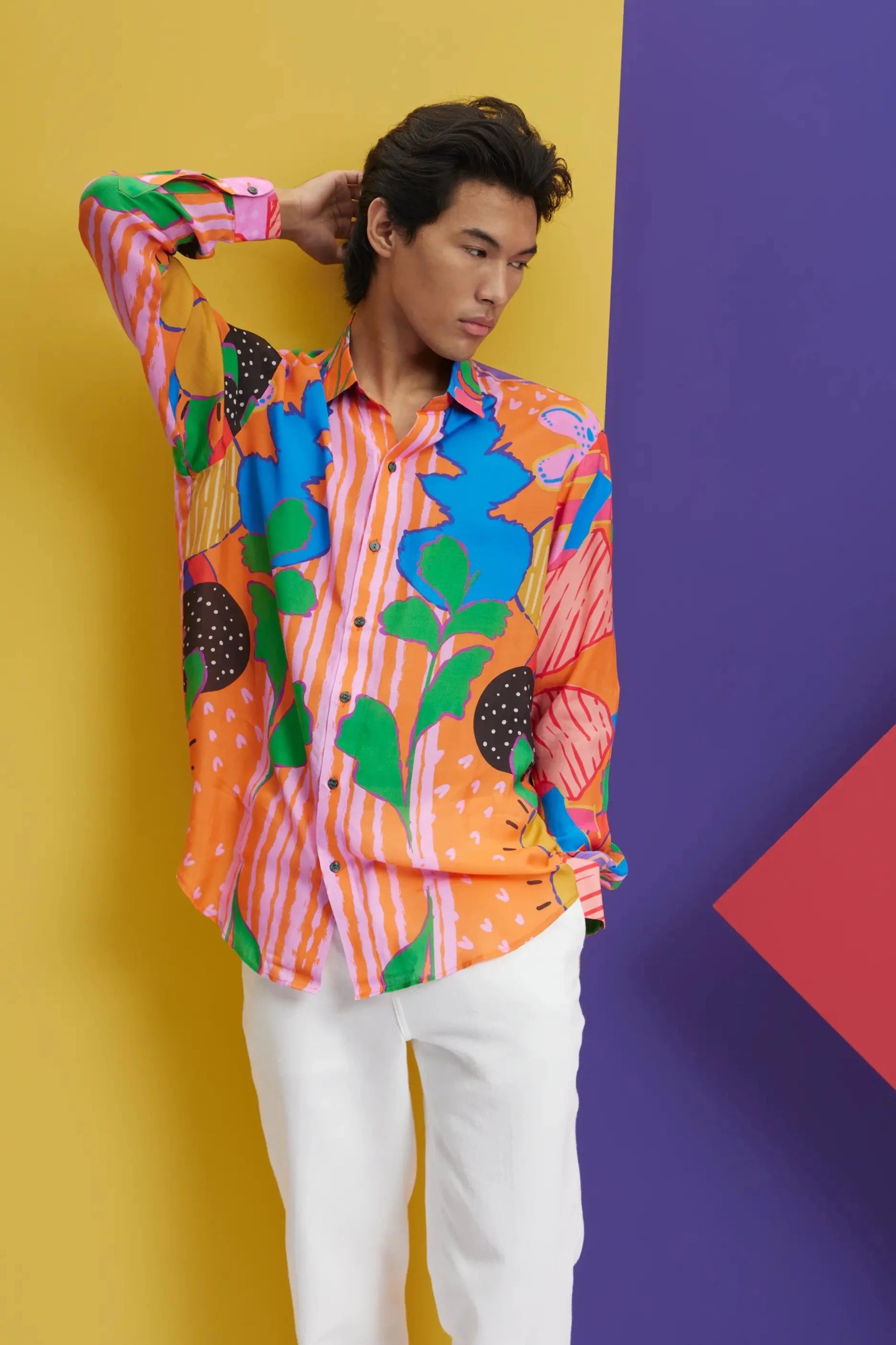 Brighten up your wardrobe with our stunning Multicolor Bloom Printed Shirt! This vibrant piece showcases a beautiful array of blooming flowers in a delightful mix of colors, perfect for making a statement. Crafted from lightweight, breathable fabric, this shirt offers both comfort and style, making it an ideal choice for sunny days and casual outings.