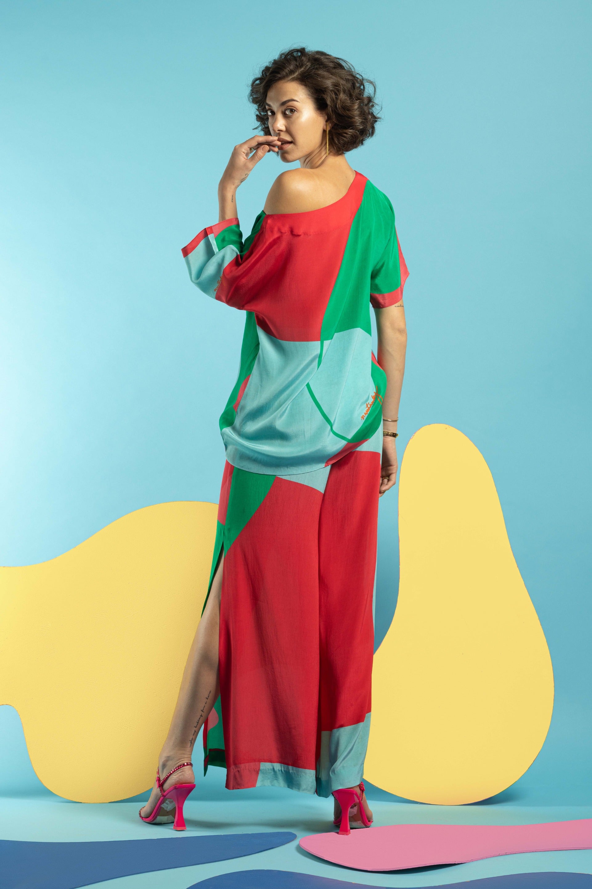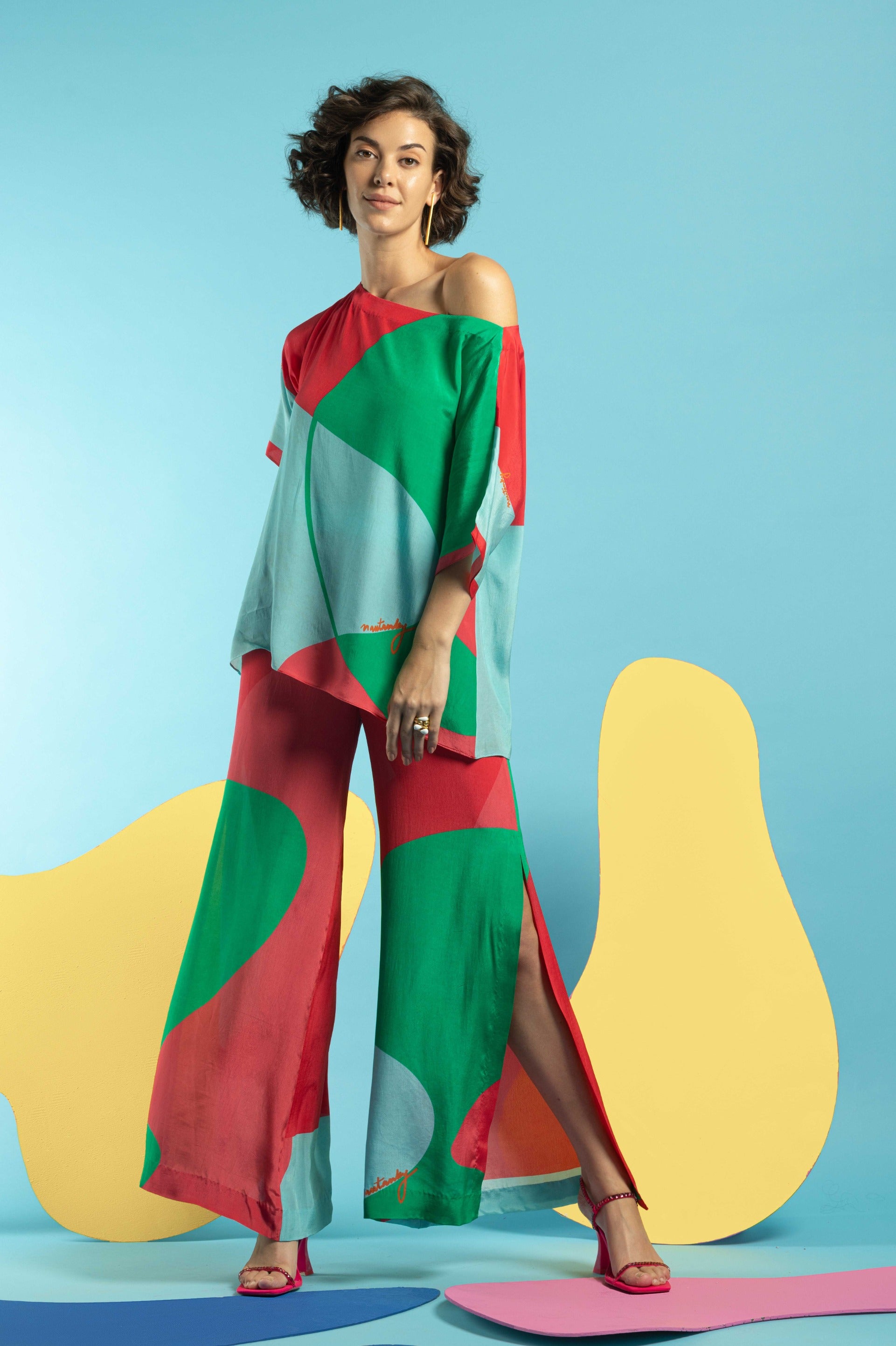 Revitalize your wardrobe with the Multicolor Boxy Top with Slit Pants, an ensemble that fuses bold design with modern sophistication. The boxy top features a vibrant multicolor pattern, offering a striking visual impact and adding a playful touch to your look. Its relaxed, boxy cut provides a trendy, comfortable fit, perfect for creating a stylish, laid-back silhouette. Paired with sleek slit pants, this outfit achieves a sophisticated balance, enhancing your appearance with a touch of chic elegance. Crafted from high-quality, breathable fabric, both pieces ensure all-day comfort and durability. Embrace this dynamic combination for a standout look that effortlessly merges contemporary flair with vibrant style.