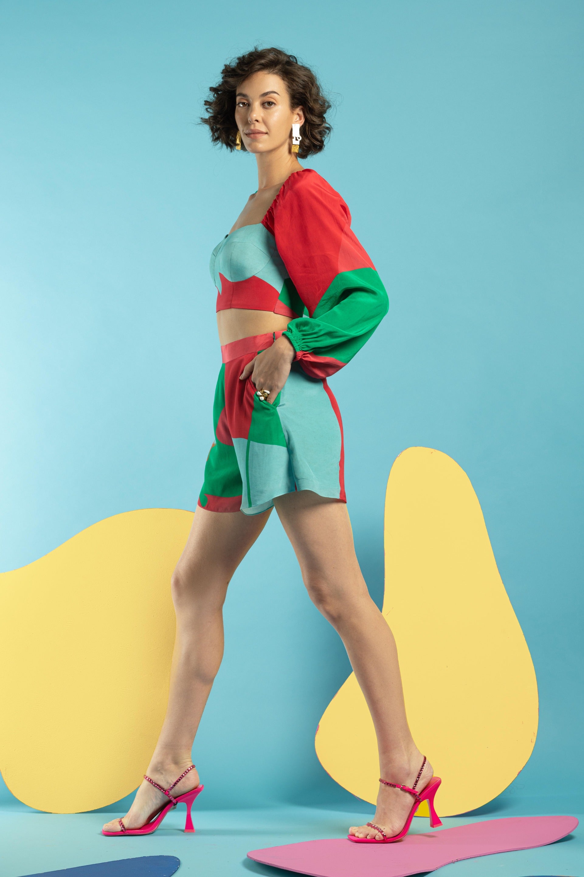 Revamp your summer wardrobe with the Multicolor Bustier with Shorts, a striking ensemble that blends playful patterns with contemporary style. The multicolor bustier features a bold and eye-catching design, showcasing a lively mix of hues that add a dynamic touch to your look. Its structured fit enhances your silhouette, offering both support and style. Paired with coordinating shorts, this outfit delivers a perfect balance of vibrant chic and relaxed comfort, making it ideal for sunny days, casual outings, and fun get-togethers. Crafted from high-quality, breathable fabric, both pieces ensure all-day wearability while keeping you stylish and cool. Embrace this standout combination for a fashion-forward look that radiates confidence and flair.
