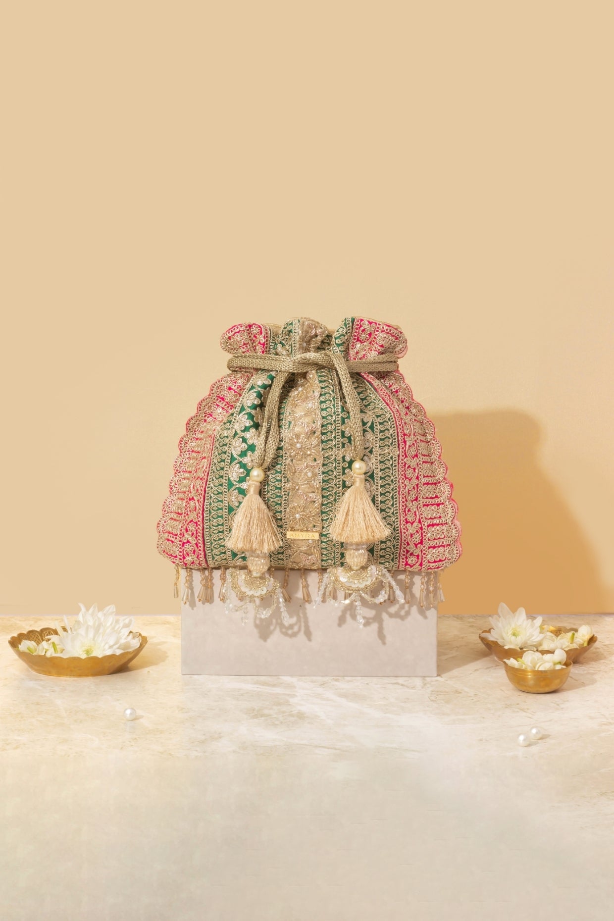 A vibrant masterpiece, the Multicolor Naaz Potli celebrates rich craftsmanship with its intricate embroidery and radiant hues. Designed to complement a spectrum of ethnic outfits, this potli is adorned with exquisite detailing, making it an ideal choice for weddings, festive gatherings, and cultural celebrations. The fusion of colors adds a playful yet elegant touch, ensuring you stand out in any crowd.