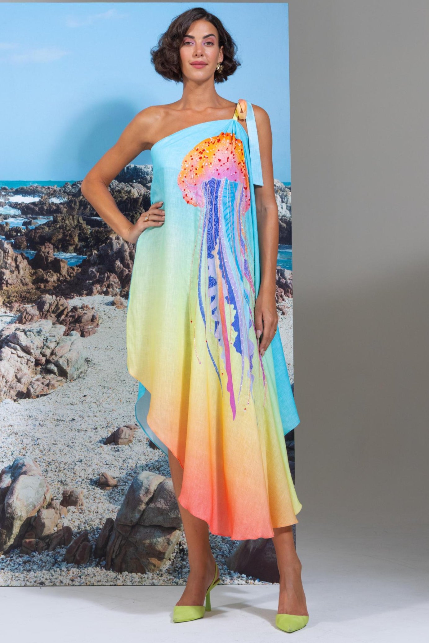 Make a striking statement with the Multicolor Pina Wow One Shoulder Dress. Featuring a bold mix of vibrant hues and a chic one shoulder silhouette, this dress is a perfect blend of fun and sophistication. Ideal for parties, holidays, or stylish day events, it's crafted from lightweight fabric for all day comfort. The Multicolor Pina Wow One Shoulder Dress is made for those who love playful fashion with a standout edge.