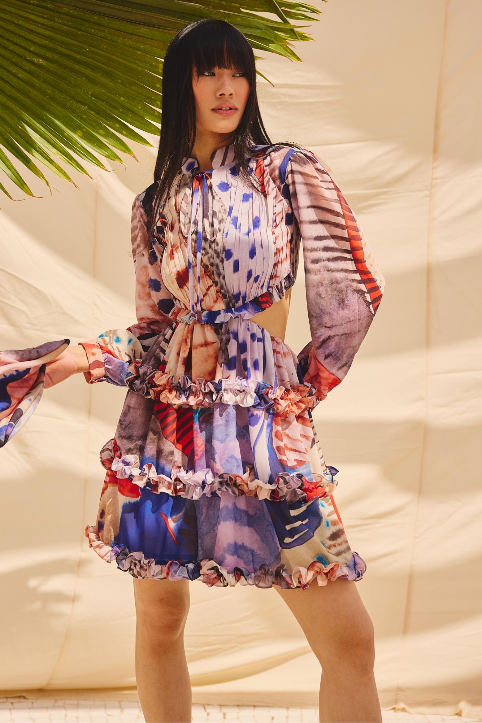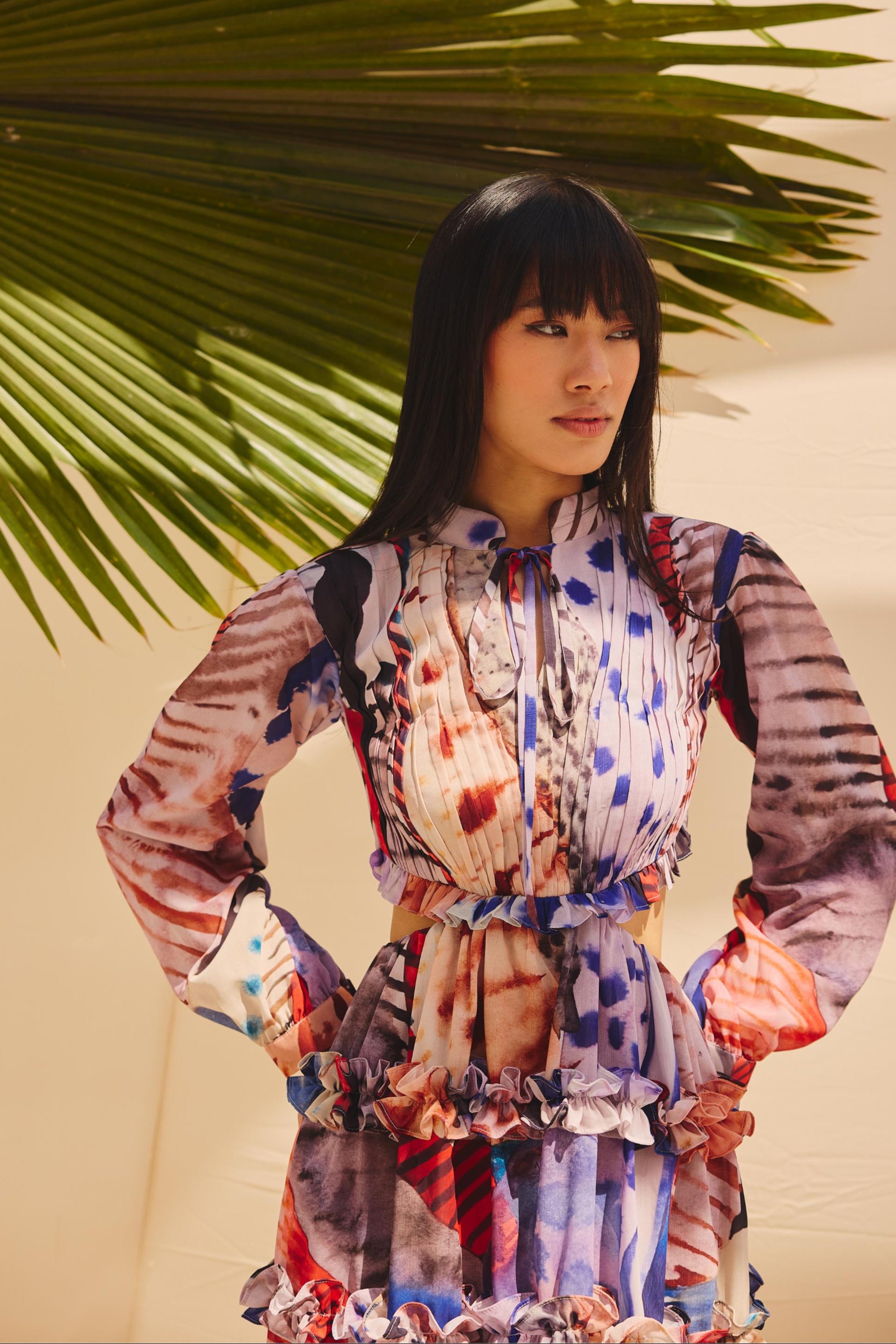 The Multicolor Pleats & Palettes Art Zip Dress is a striking composition of structure and fluidity. Designed with crisp pleats and brushstroke-inspired prints, it channels the charm of a wearable canvas. The zip-front detail adds a playful edge, offering versatility in styling. Perfect for gallery strolls or rooftop soirees, it's a celebration of color, craft, and creativity. Pair it with bold heels or sneakers for a high-impact look.