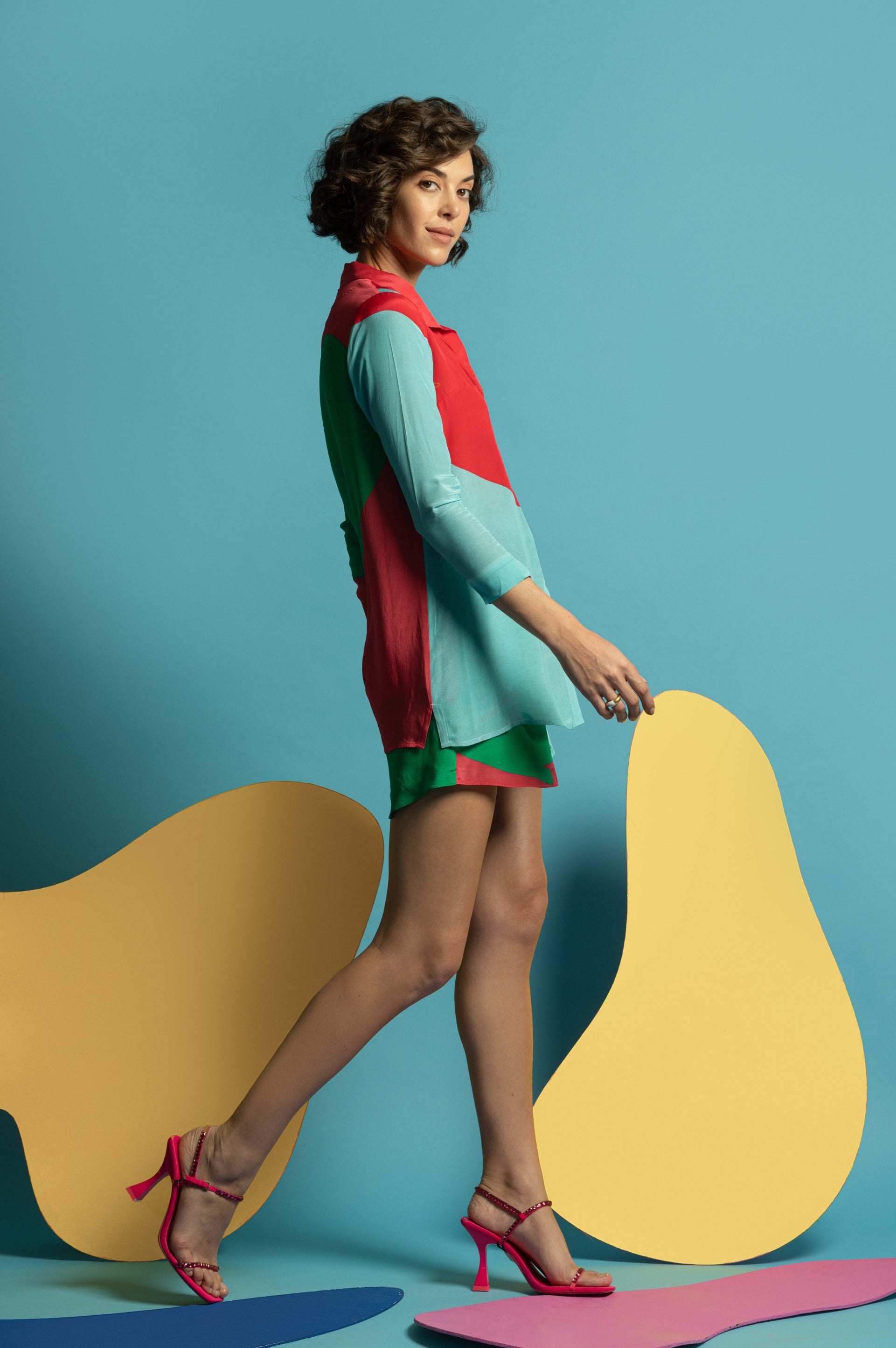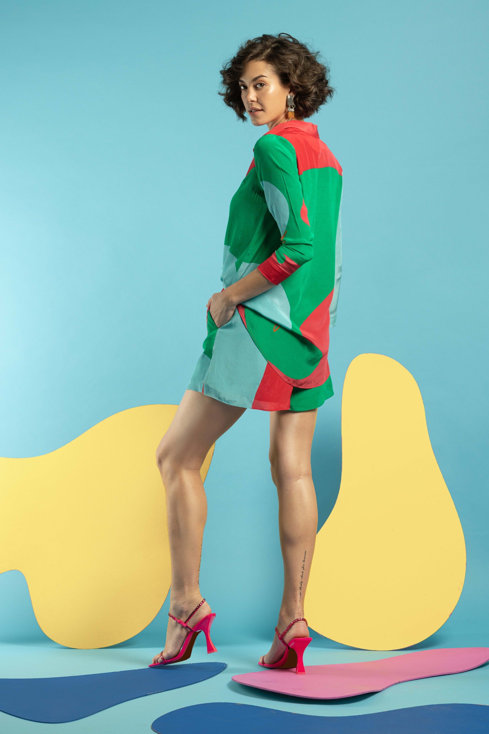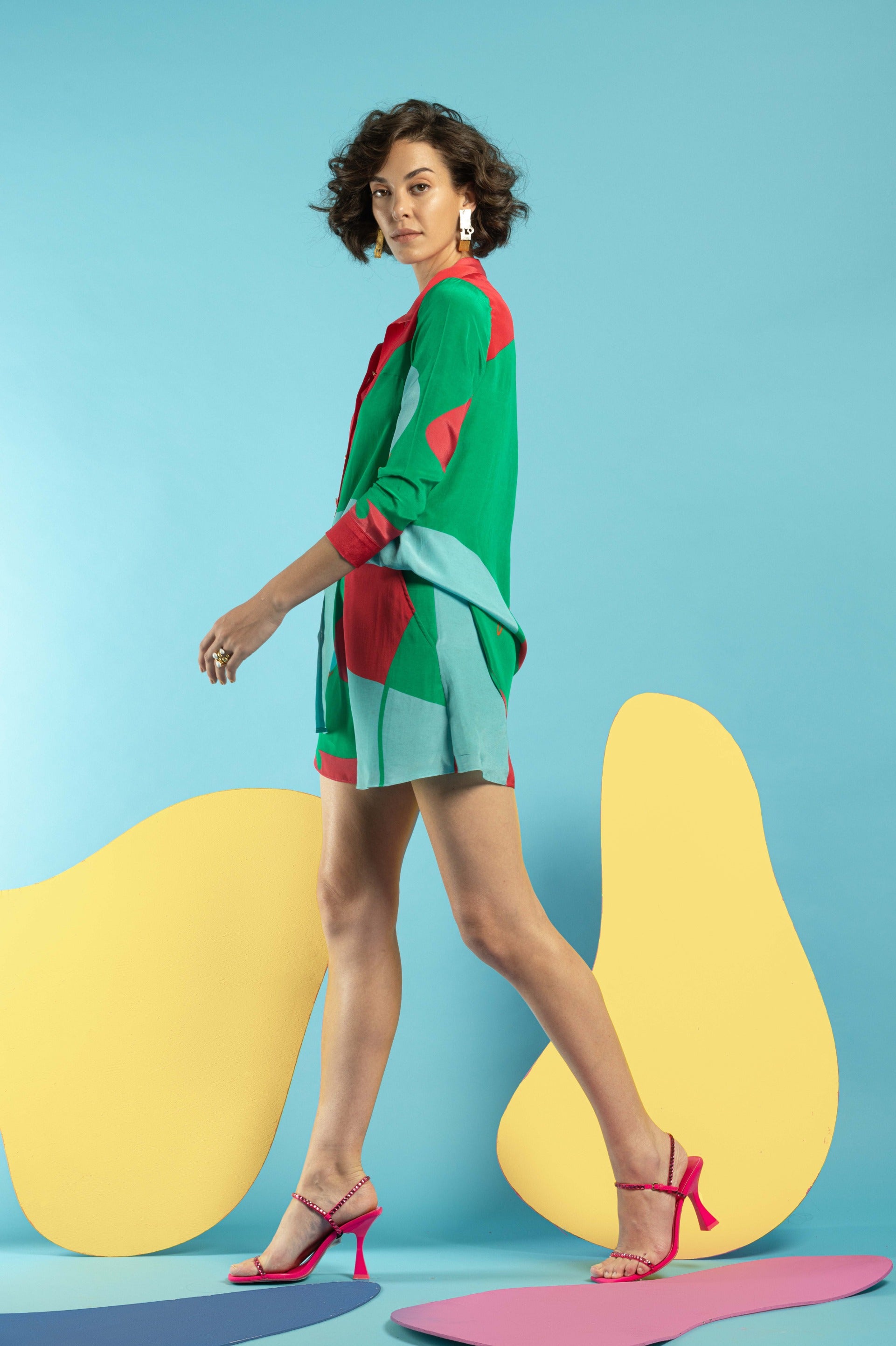 Unleash your fashion flair with the Multicolor Shirt with Hot Pants, an ensemble that combines vibrant patterns with youthful energy. The multicolor shirt features a dynamic array of hues, adding a lively and eye-catching element to your look. Its relaxed fit and stylish design make it a versatile piece for various occasions. Paired with trendy hot pants, this outfit exudes a playful and confident vibe, perfect for warm-weather outings and casual gatherings. Crafted from high-quality, breathable fabric, both the shirt and hot pants offer comfort and durability while maintaining a chic appearance. Embrace this striking combination for a bold, fashion-forward look that celebrates color and style.