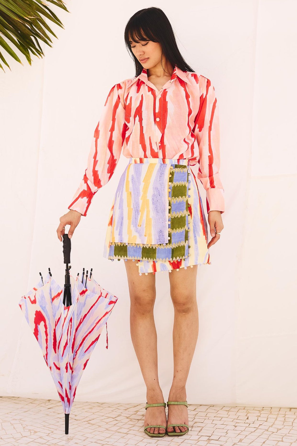 The Multicolor Spectrum Art Zip Shirt captures the essence of artistic expression with its bold, rainbow-like array of colors. Designed to stand out, the zip detail adds a modern twist to a classic shirt silhouette, making it a perfect choice for those who love unique, eye-catching pieces. Whether dressed up or down, this shirt brings a vibrant burst of creativity to any look. Pair it with matching pieces or neutral tones for a balanced, yet striking outfit. Ideal for those with a flair for color and fashion-forward style.