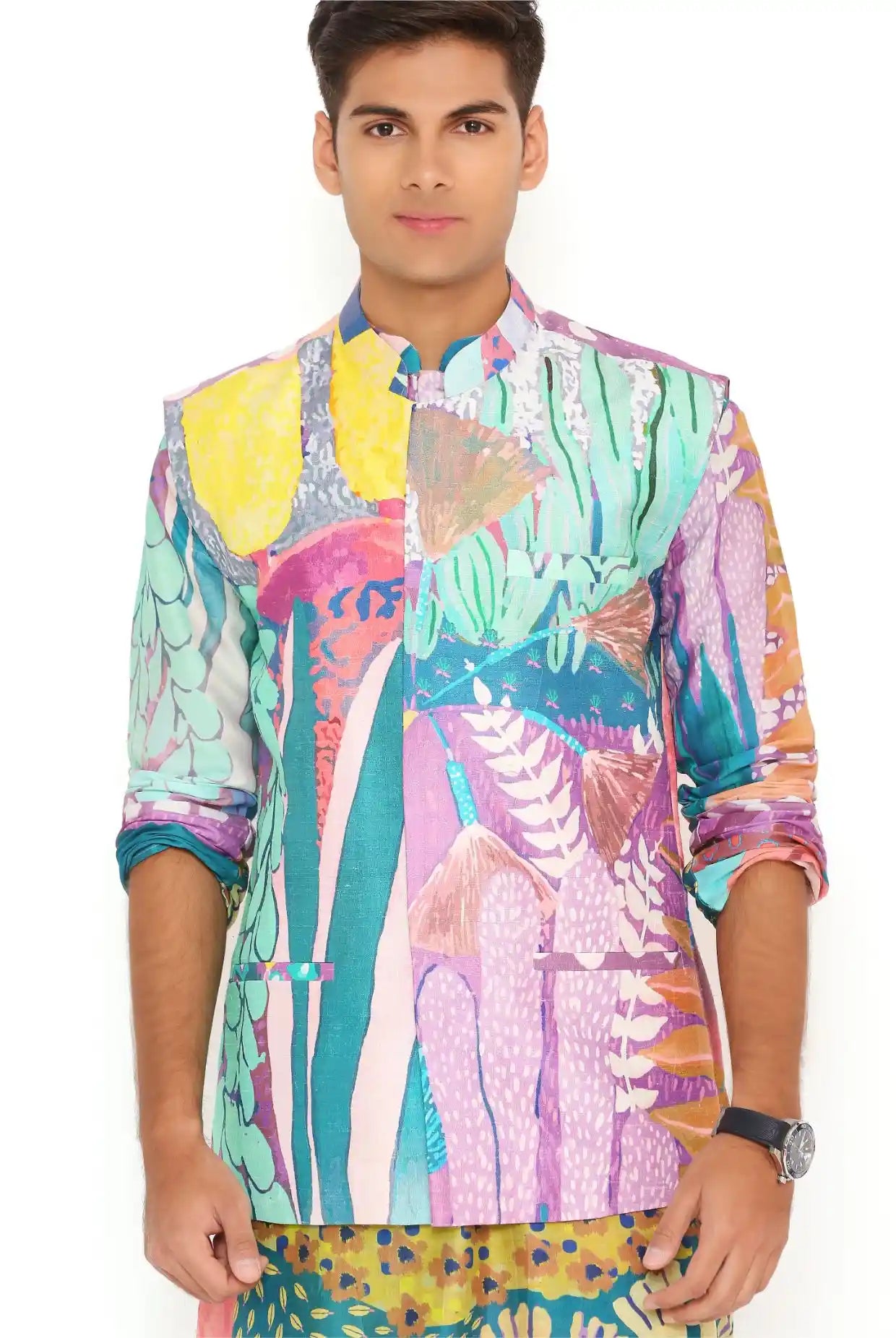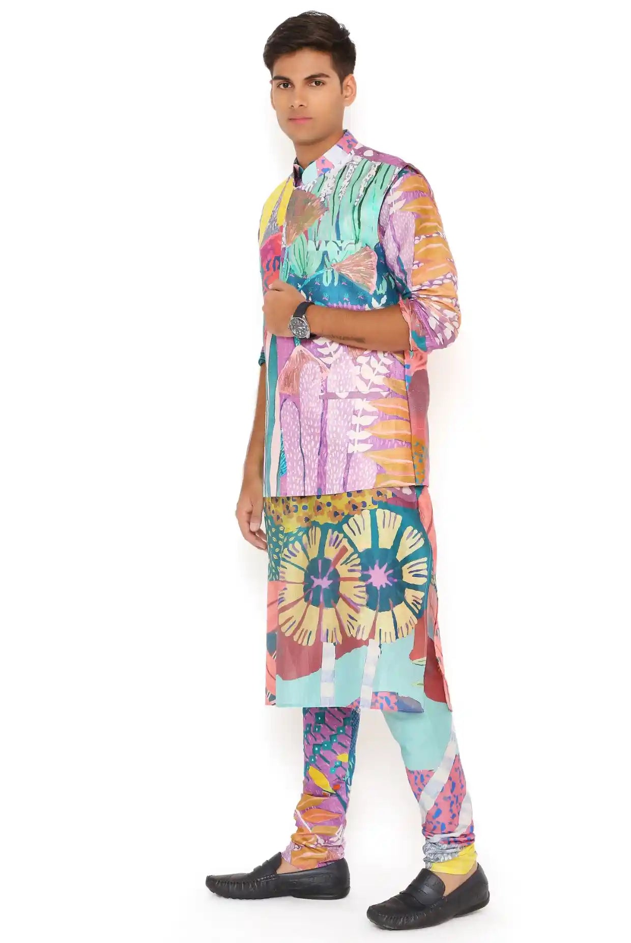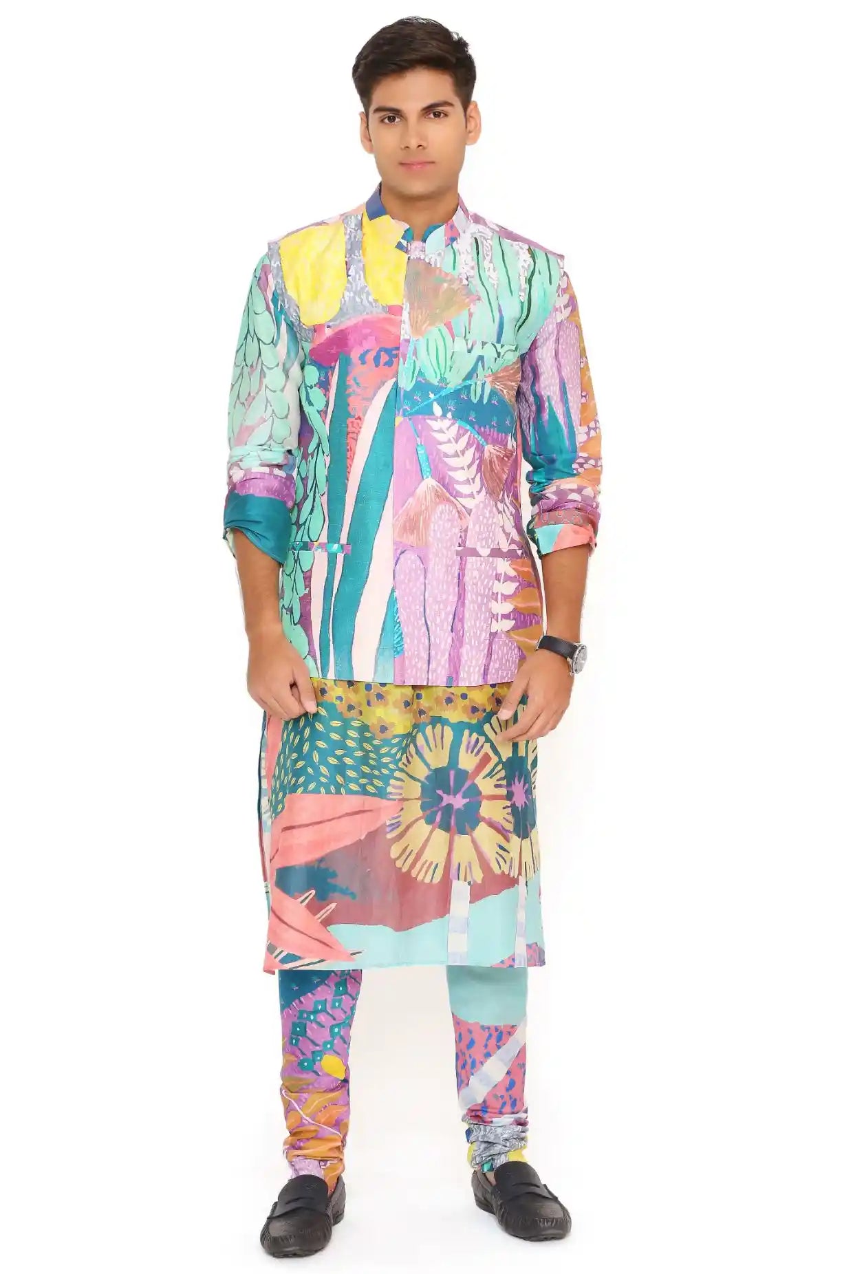 Multicolor tropical print bandi and kurta set