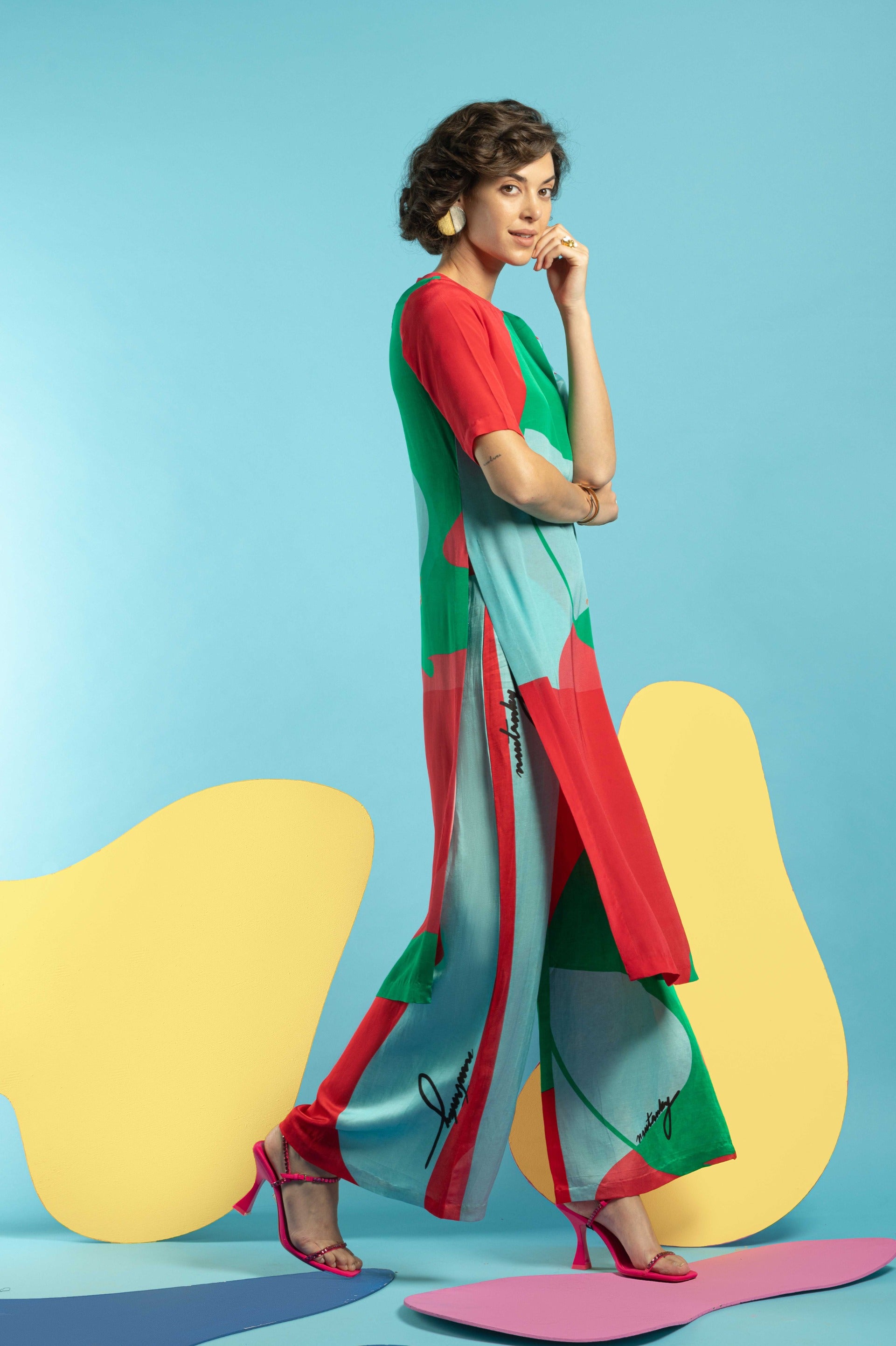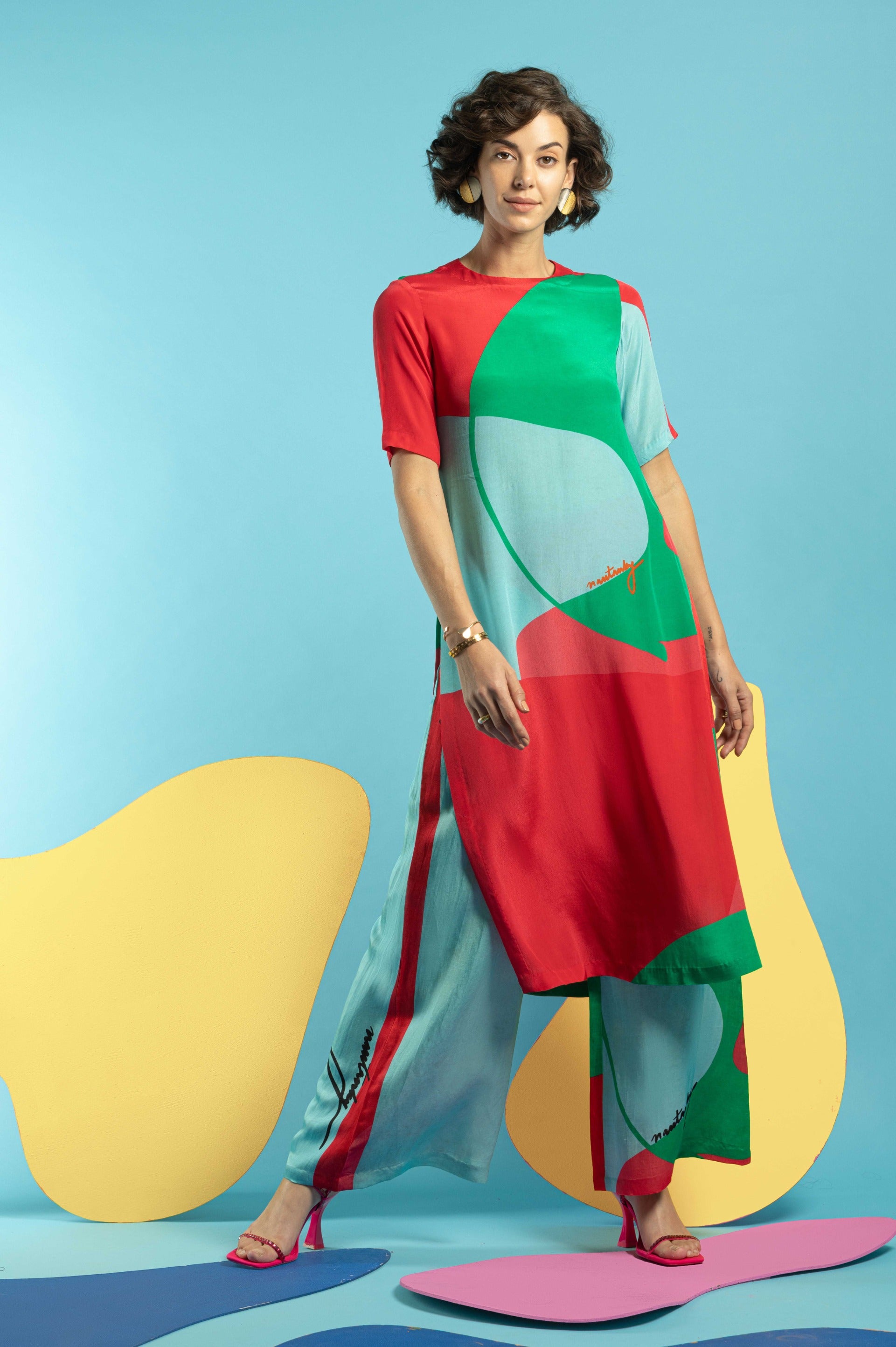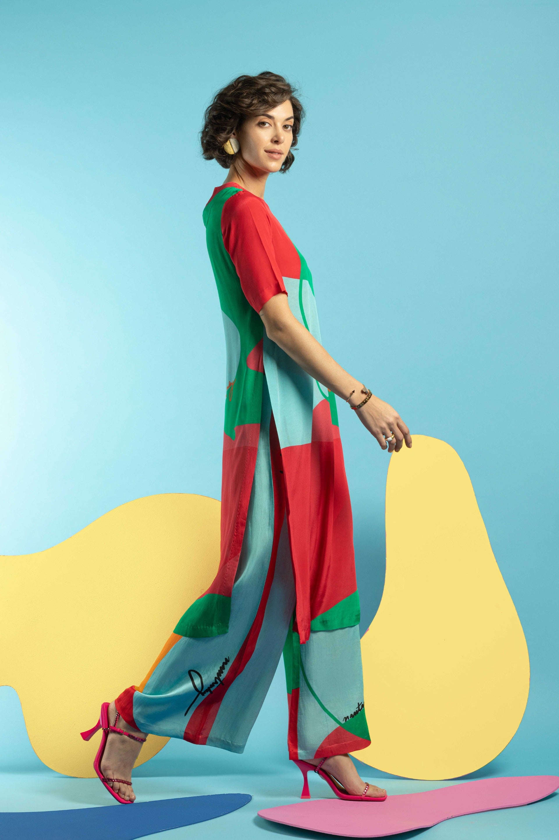 Step into a world of vibrant sophistication with the Multicolor Tunic with Wide-Leg Pants. This striking ensemble features a beautifully designed multicolor tunic that adds a splash of lively hues and artistic flair to your wardrobe. The tunic’s flowing silhouette and eye-catching patterns create a dynamic look, while its lightweight, high-quality fabric ensures a comfortable and graceful drape. Paired with wide-leg pants, the outfit achieves a harmonious balance of style and comfort, offering a relaxed yet elegant silhouette that flatters all body types. Perfect for both casual outings and chic events, this set combines modern elegance with playful color for a standout statement.