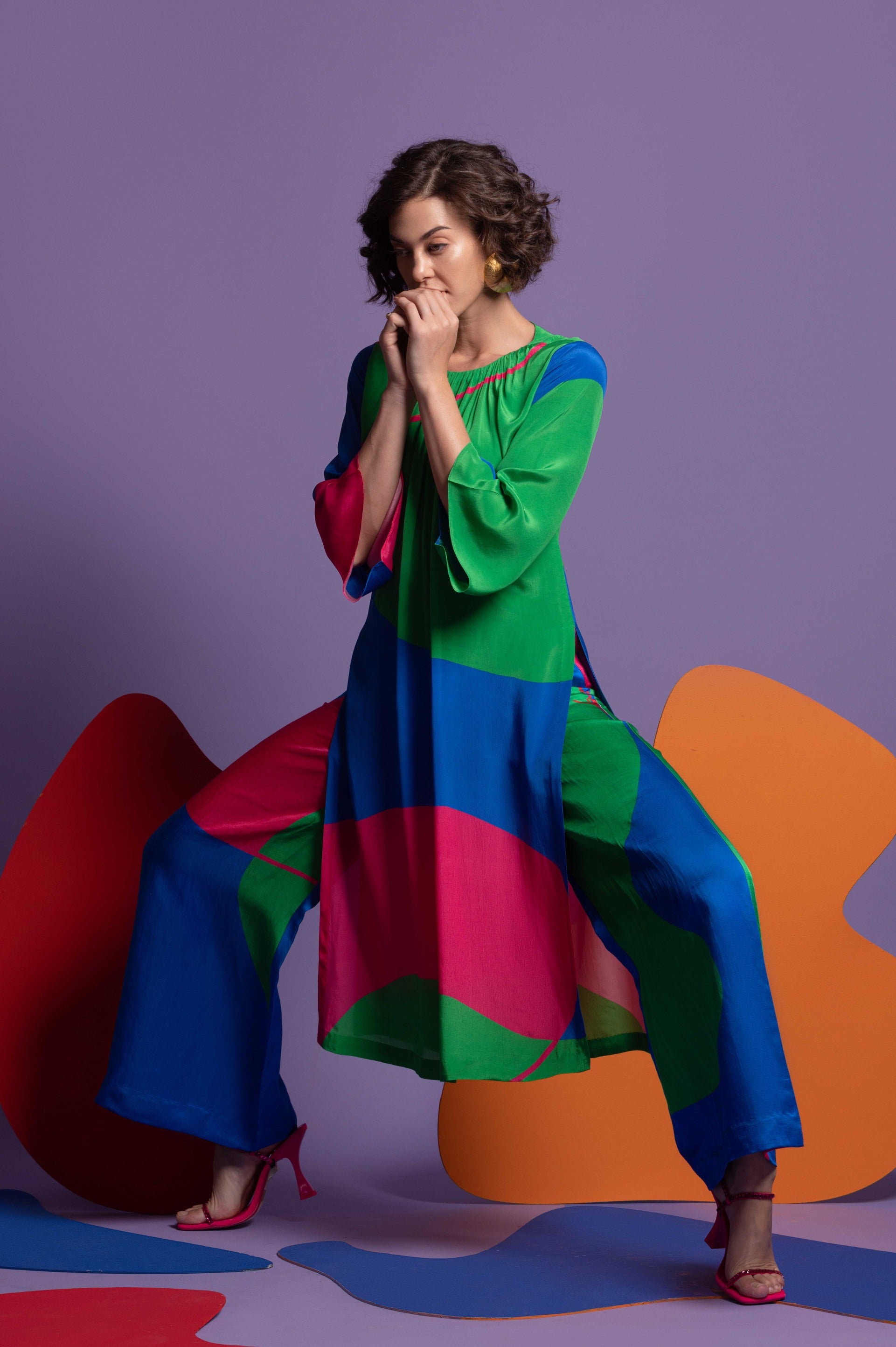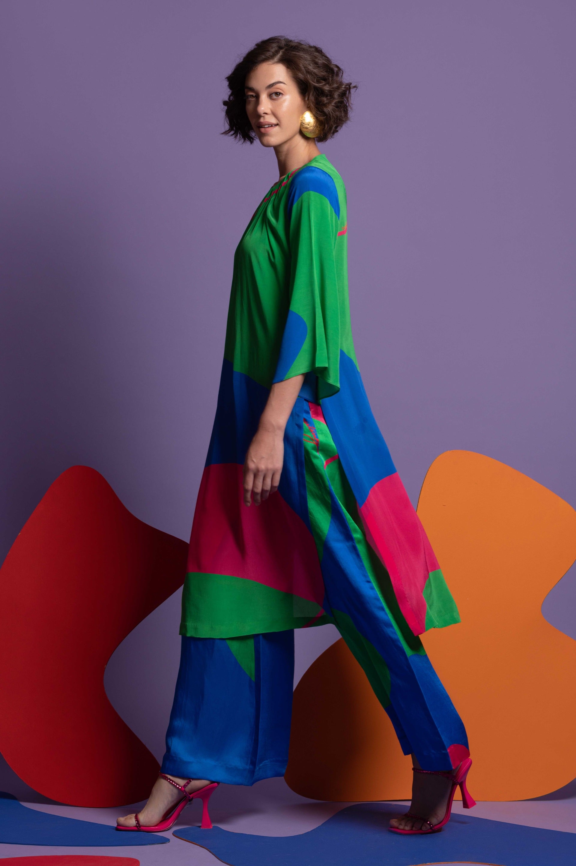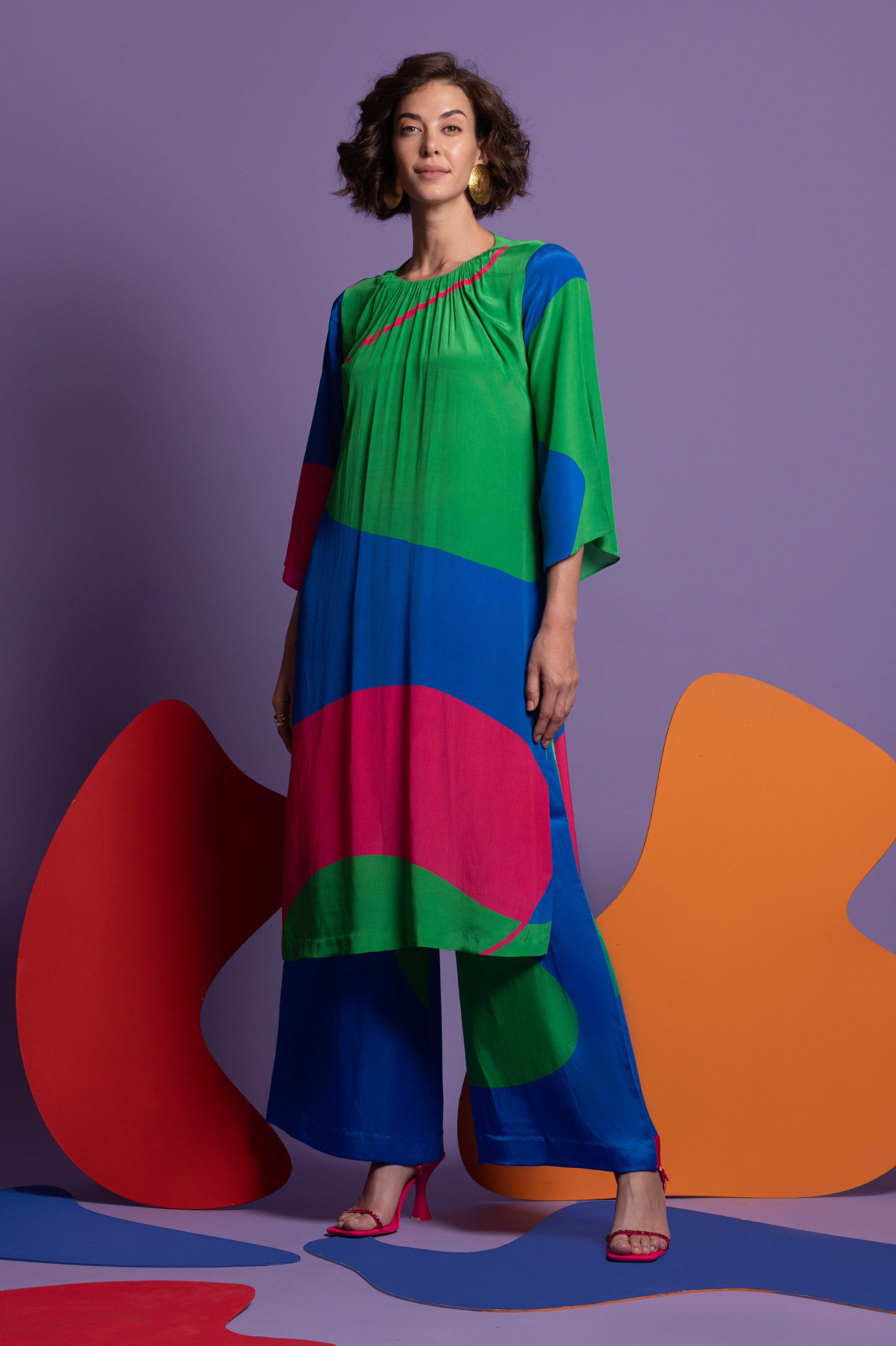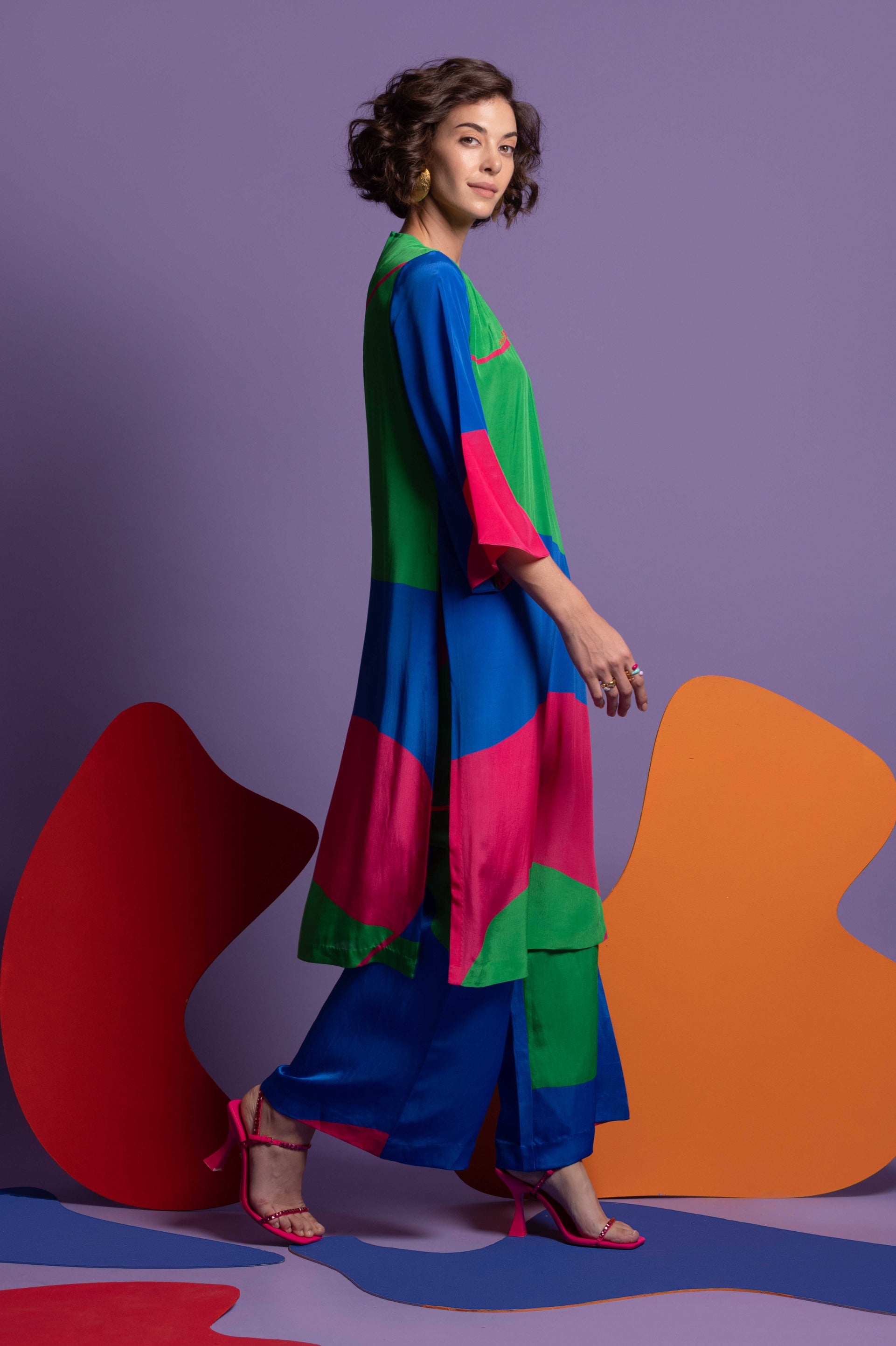 Infuse your wardrobe with the Multicolor Tunic with Wide-Leg Pants, an ensemble that beautifully combines lively patterns with sophisticated design. The tunic features an eye-catching multicolor pattern that adds a splash of dynamic hues and artistic flair, while its flowing, relaxed fit ensures a comfortable and flattering silhouette. Paired with wide-leg pants, this outfit achieves a chic, elongated look that balances bold style with effortless comfort. Perfect for both casual outings and semi-formal events, the set is crafted from high-quality, breathable fabric, ensuring durability and ease of wear. Embrace this stylish combination for a standout appearance that merges vibrant elegance with contemporary chic.