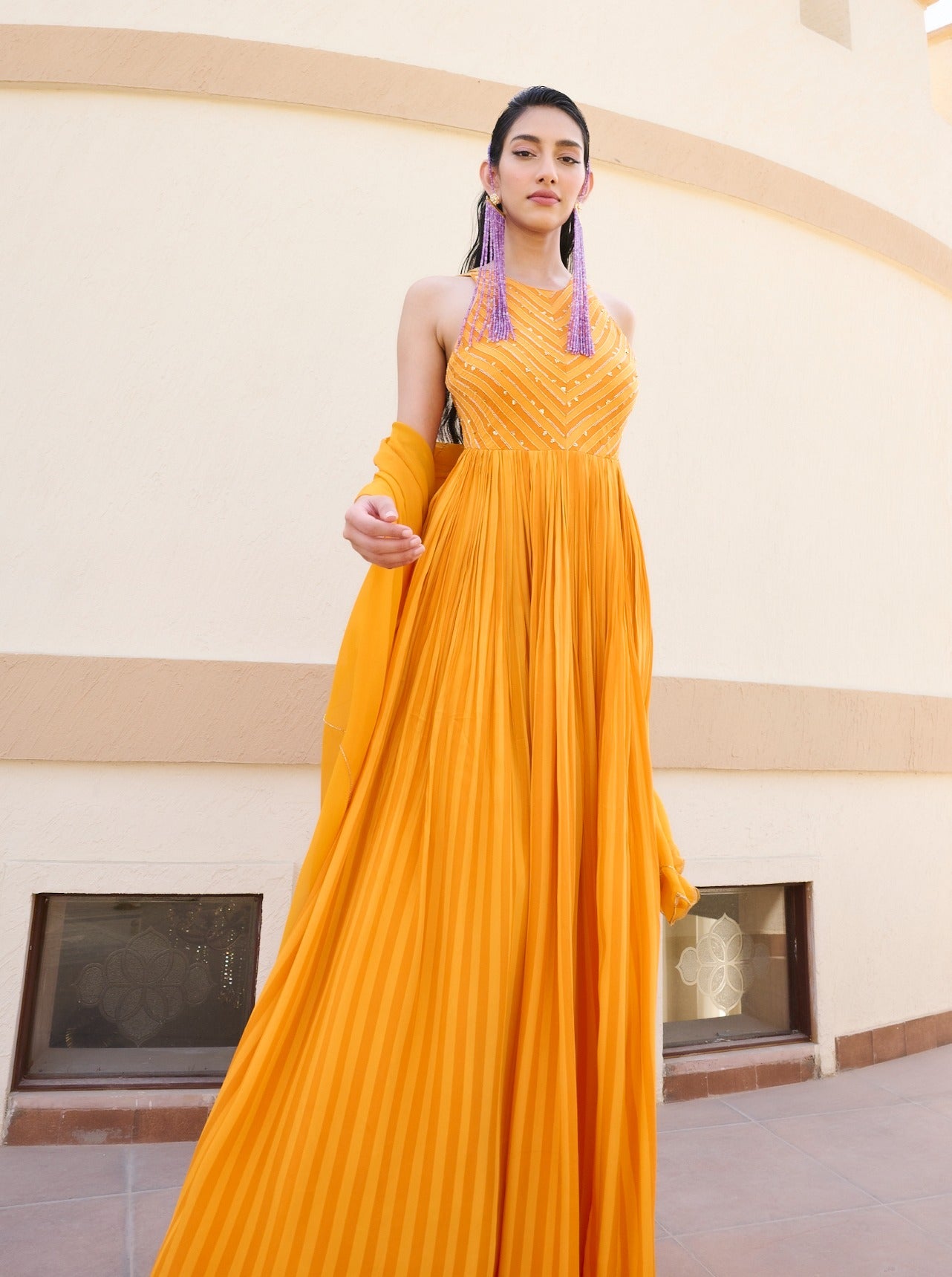Elevate your style with our two broad step yoke striped embroidered anarkali, featuring intricate embroidery that adds a sophisticated touch to its classic design. The broad step yoke enhances the anarkali’s silhouette, offering a flattering and graceful fit. Paired with a matching dupatta, this ensemble exudes timeless elegance, making it perfect for festive occasions and formal events. Embrace a blend of traditional craftsmanship and modern elegance with this beautifully crafted outfit.