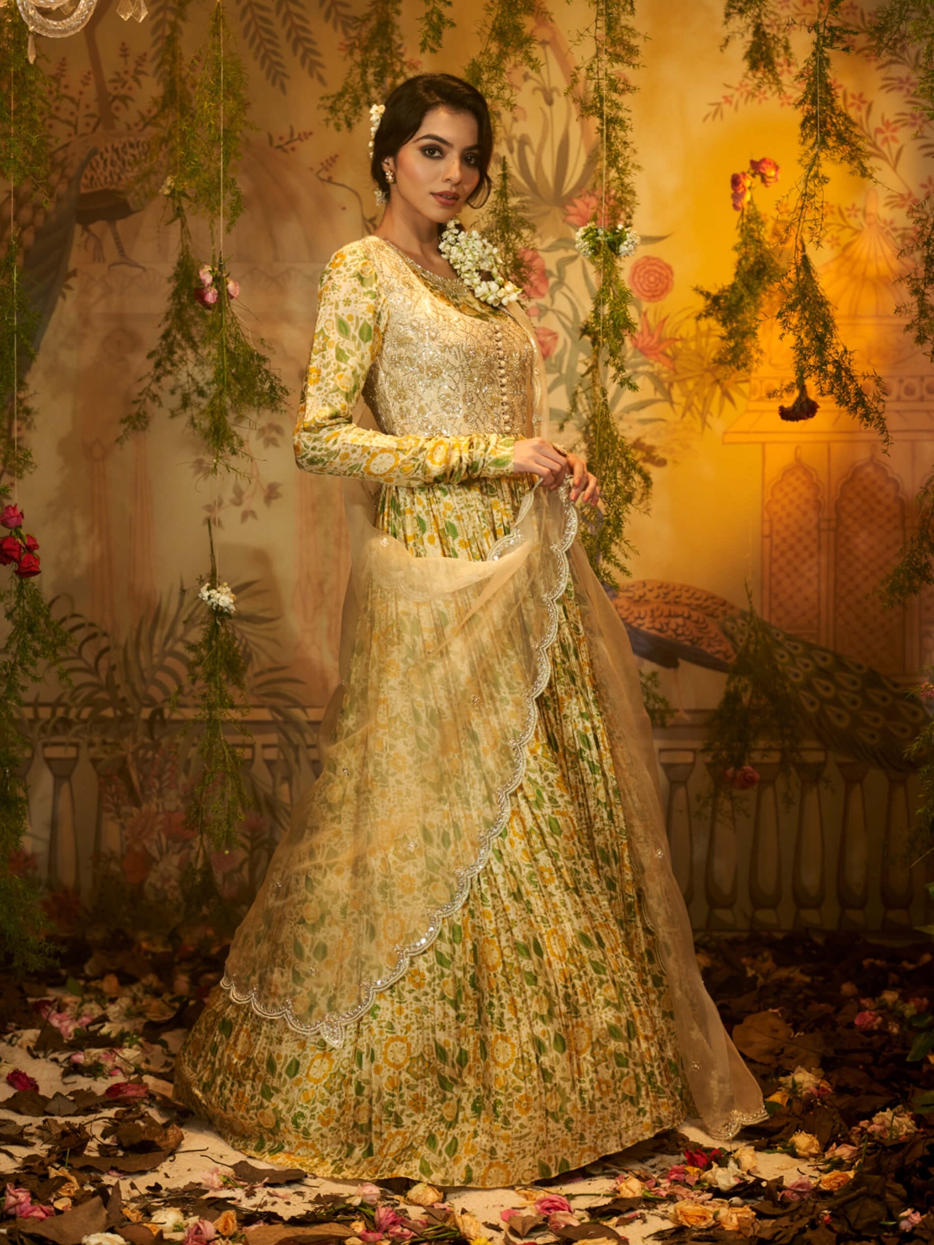 Step into timeless grace with the nargis anarkali, crafted from luxurious upada silk. This exquisite ensemble features a flowing anarkali silhouette that exudes elegance and sophistication. Complete your look with a delicate organza dupatta, adding a touch of ethereal charm. Perfect for weddings and special occasions, the nargis anarkali promises to envelop you in classic beauty and timeless allure, ensuring you radiate grace and poise wherever you go.