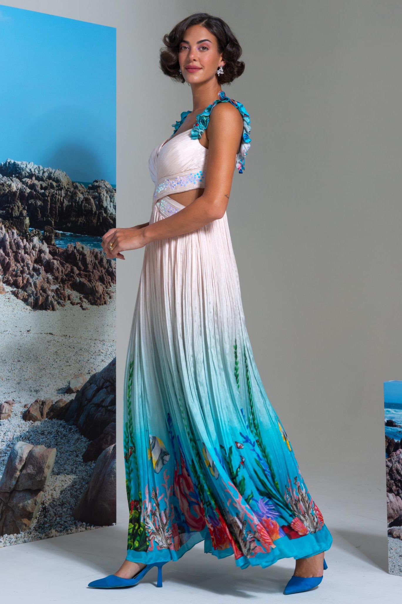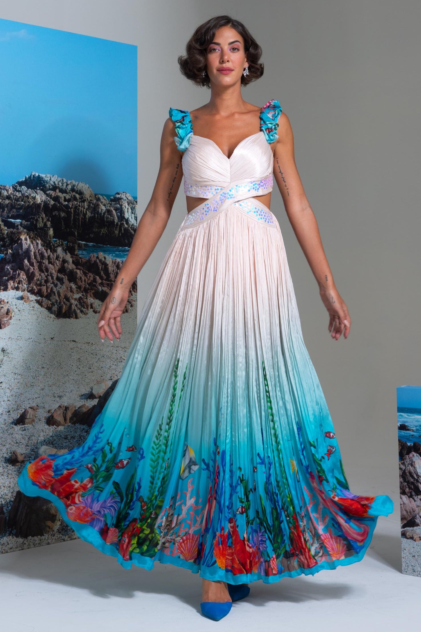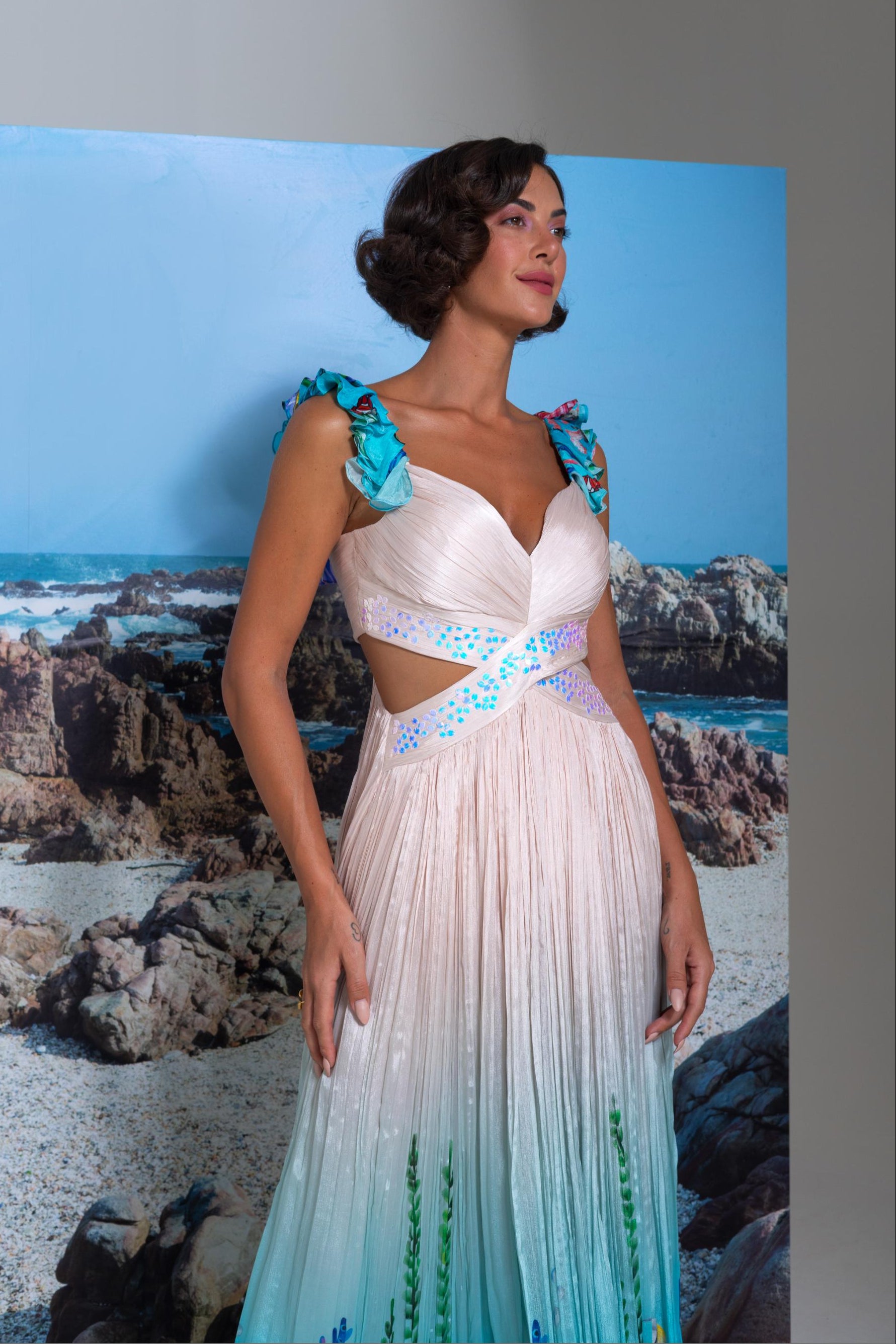 Ivory wow episode full-length flared dress with cutout detail