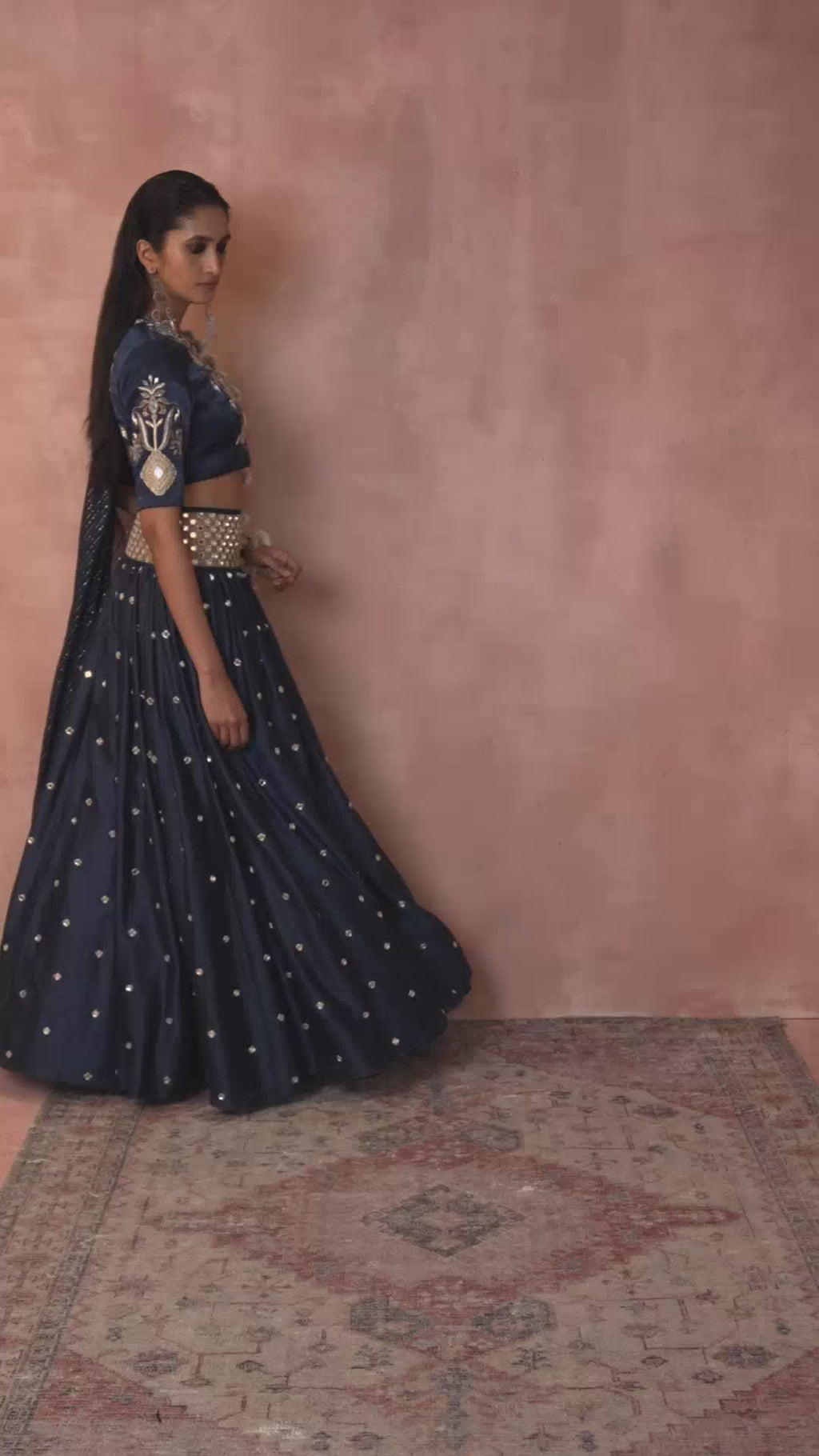 Step into luxury with our Navy Satin Embroidered Choli and Silkmul Lehenga ensemble. The choli, crafted from opulent navy satin, boasts intricate embroidery that adds a touch of regal elegance. Paired with the lehenga made from exquisite silkmul fabric, this outfit features a beautifully cutwork embroidered belt that accentuates the waist and adds a sophisticated flair. Completing the look is a lurex georgette dupatta, which drapes gracefully with a subtle shimmer, enhancing the overall allure of the ensemble. Perfect for weddings and high-profile events, this combination blends timeless elegance with contemporary charm for a truly standout appearance.