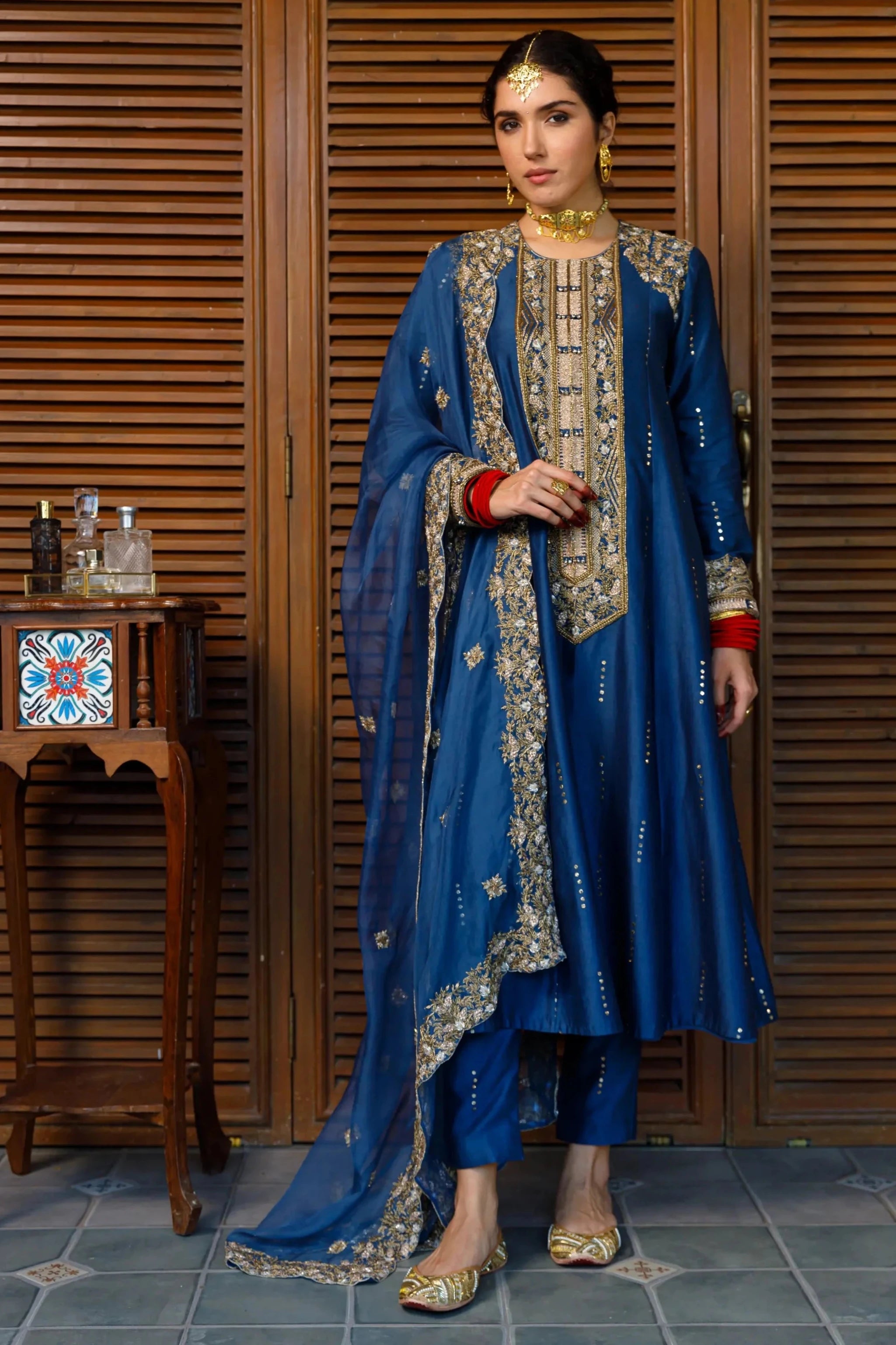 The Ruksaan Navy Embroidered Yoke Kurta paired with a sleek pant and a complementary dupatta offers a refined, elegant ensemble. The intricate embroidered yoke on the kurta adds a touch of sophistication, while the tailored pant creates a modern silhouette. The matching dupatta enhances the look, making it perfect for weddings, festivals, or any special occasion. This set effortlessly combines traditional craftsmanship with contemporary flair.