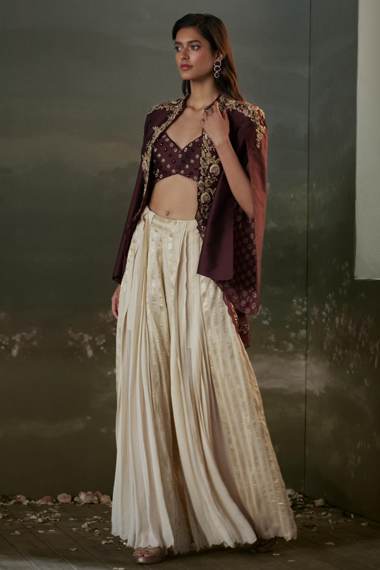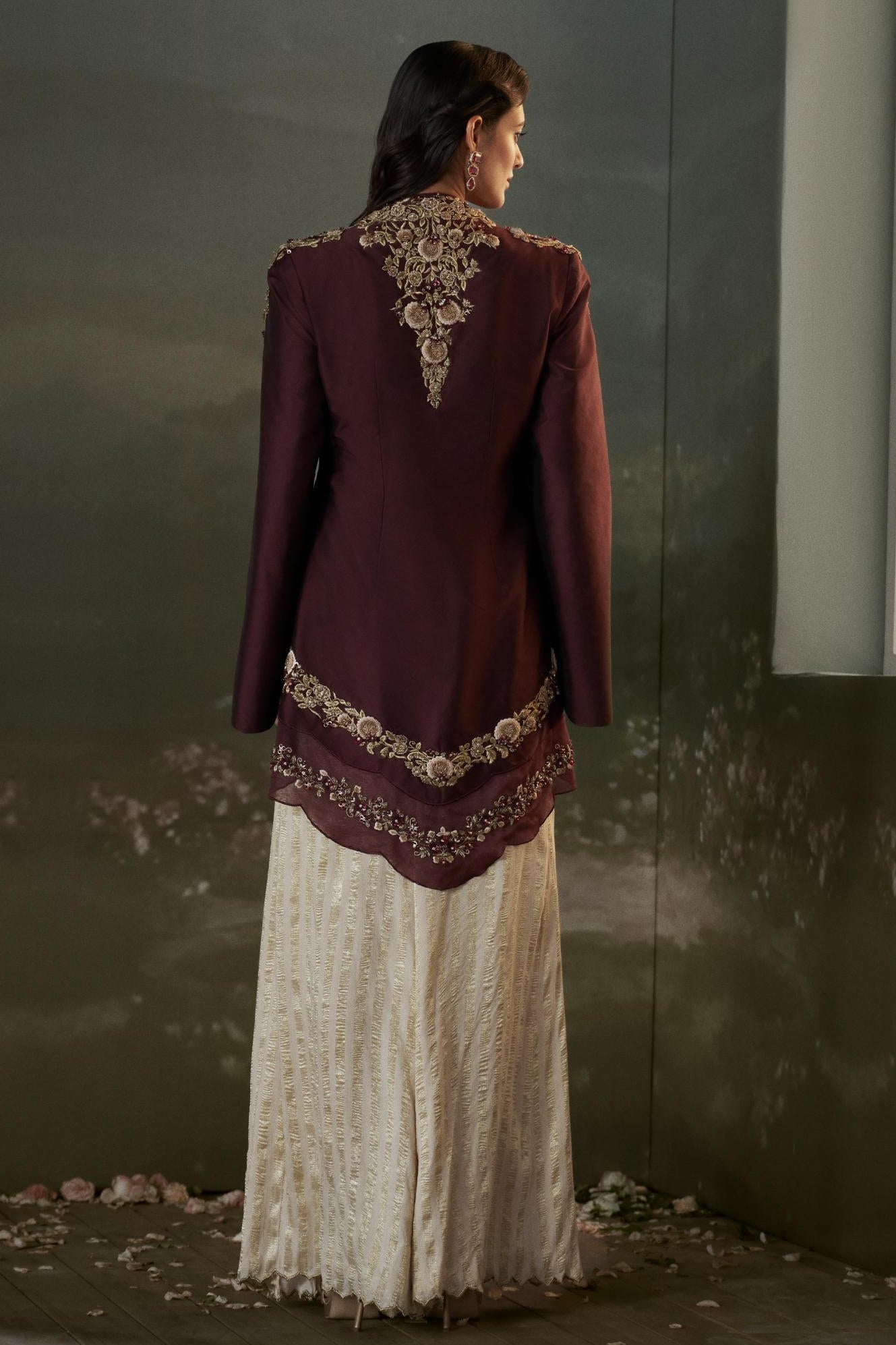 The Burgundy Noor sharara set by Nitika Gujral is designed for contemporary festive occasions. This sharara set features a fluid silhouette that allows ease of movement. The burgundy hue enhances its evening appeal, making this sharara set ideal for weddings and celebrations. Crafted for comfort, the sharara set balances structure and flow. Its refined design ensures the sharara set stands out without excess. Style this sharara set with statement accessories for a festive look.
