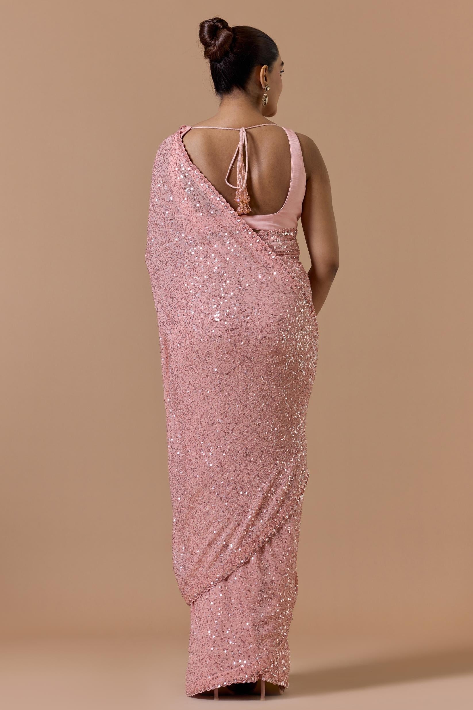 This rose pink Navyaa sequence saree is perfect for sangeets, cocktails, and festive evenings. The glistening surface adds celebratory sparkle without feeling overdone.