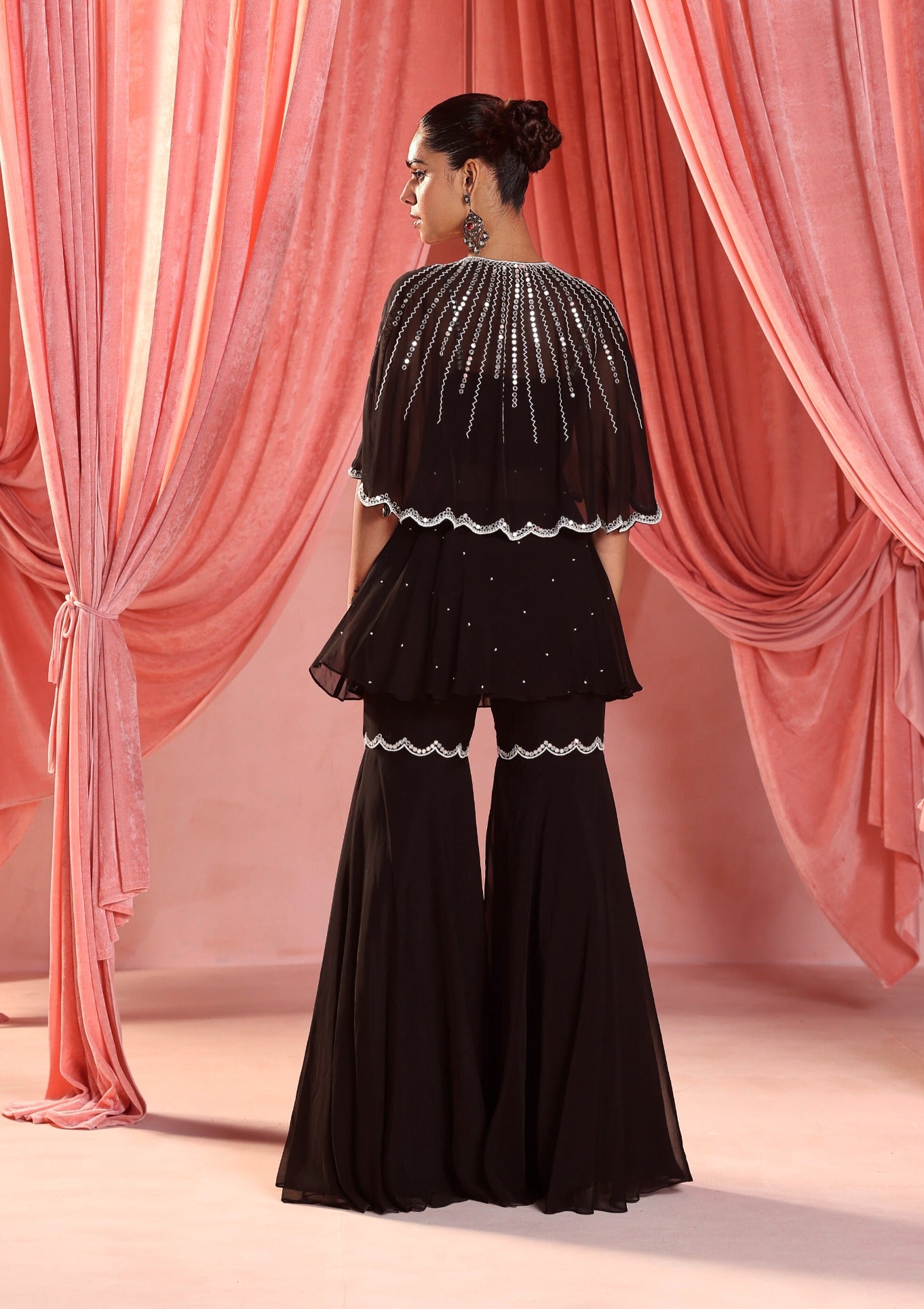 Fabric: Peplum & cape- georgette, gharara- organza, crepe, satin lining