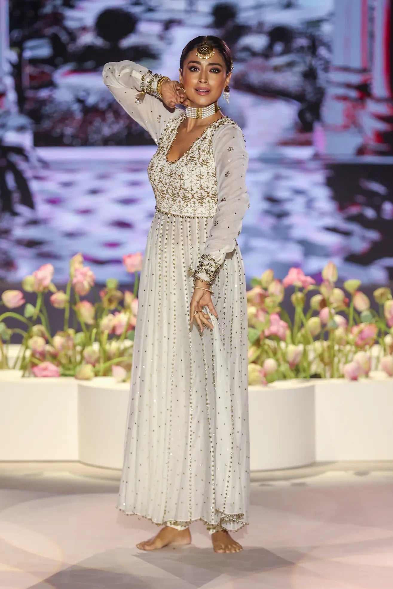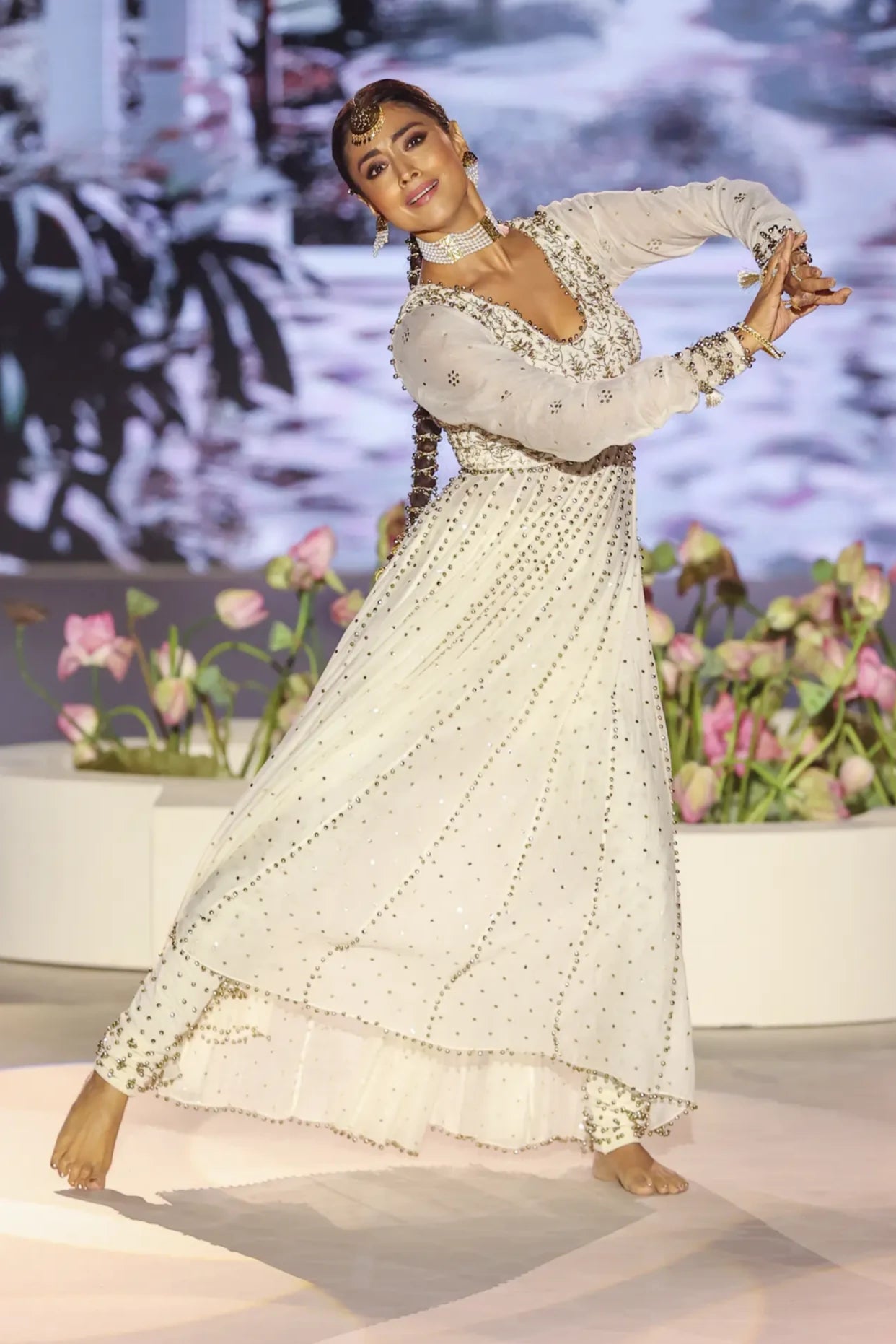 Off white embroidered anarkali and churidar with dupatta