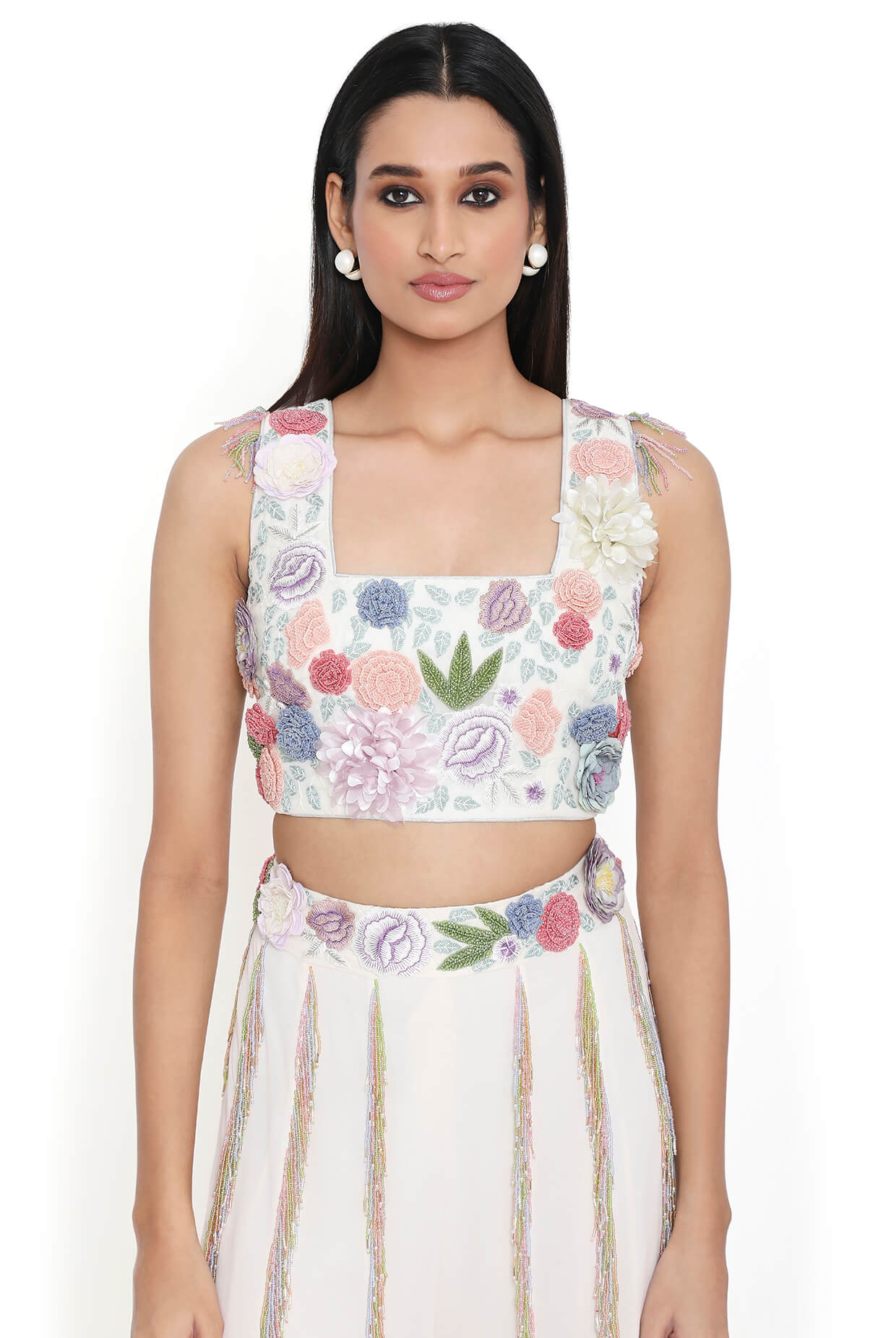 Elevate your wardrobe with our Off-White Georgette Embroidered Choli, an exquisite piece that blends classic elegance with modern flair. The choli, featuring intricate embroidery, is paired with a graceful sharara that offers both comfort and style. The ensemble is completed with a luxurious organza dupatta adorned with delicate hanging tassels, adding a touch of sophistication and movement to the outfit. Perfect for festive occasions and celebrations, this set embodies timeless beauty and contemporary charm.