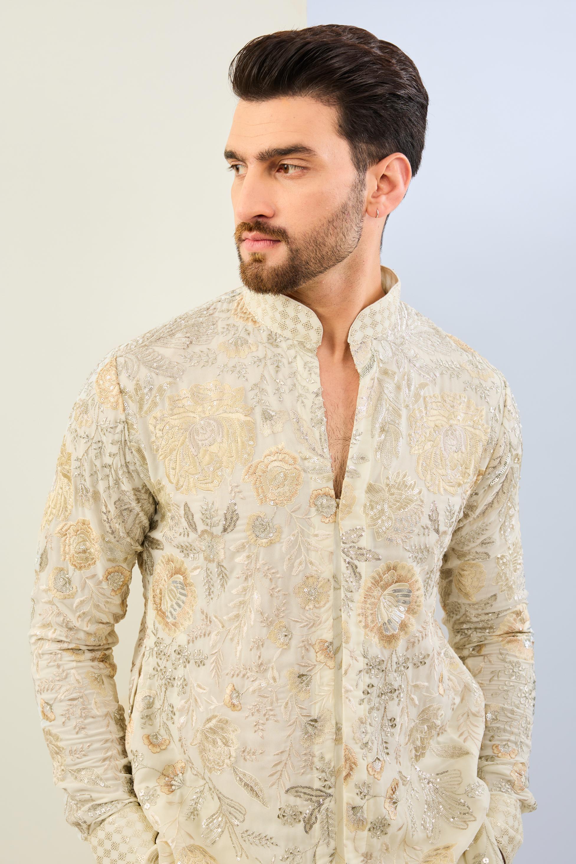 Embrace understated elegance with this offwhite fully embroidered tonal kurta, designed to exude sophistication and timeless style. The intricate tonal embroidery adds a subtle, refined detail to the soft, flowing fabric, creating a perfect balance between tradition and modern design. Paired with matching cotton silk pants, this ensemble offers both comfort and luxury, with the breathable cotton silk fabric ensuring all-day wearability. Ideal for weddings, festive occasions, or evening gatherings, this offwhite embroidered kurta and pant set is a versatile and graceful addition to your ethnic wear collection, radiating effortless charm and elegance.