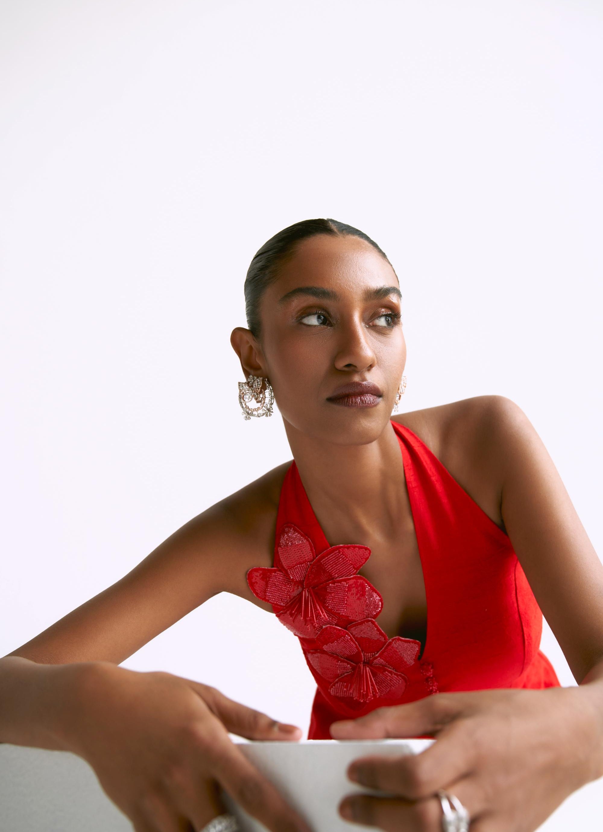 Manika Nanda, a graduate of Birmingham Institute of Art & Design, honed her skills working with J Model Management and under celebrated designer JJ Valaya. Her eponymous label is a fusion of modern design and timeless elegance, featuring crisp tailoring, bold cuts, and intricate embroidery. With a focus on high-quality fabrics and detailed craftsmanship, her pieces break fashion norms and cater to the modern woman who appreciates a blend of the old and the new, offering both statement separates and sophisticated essentials.