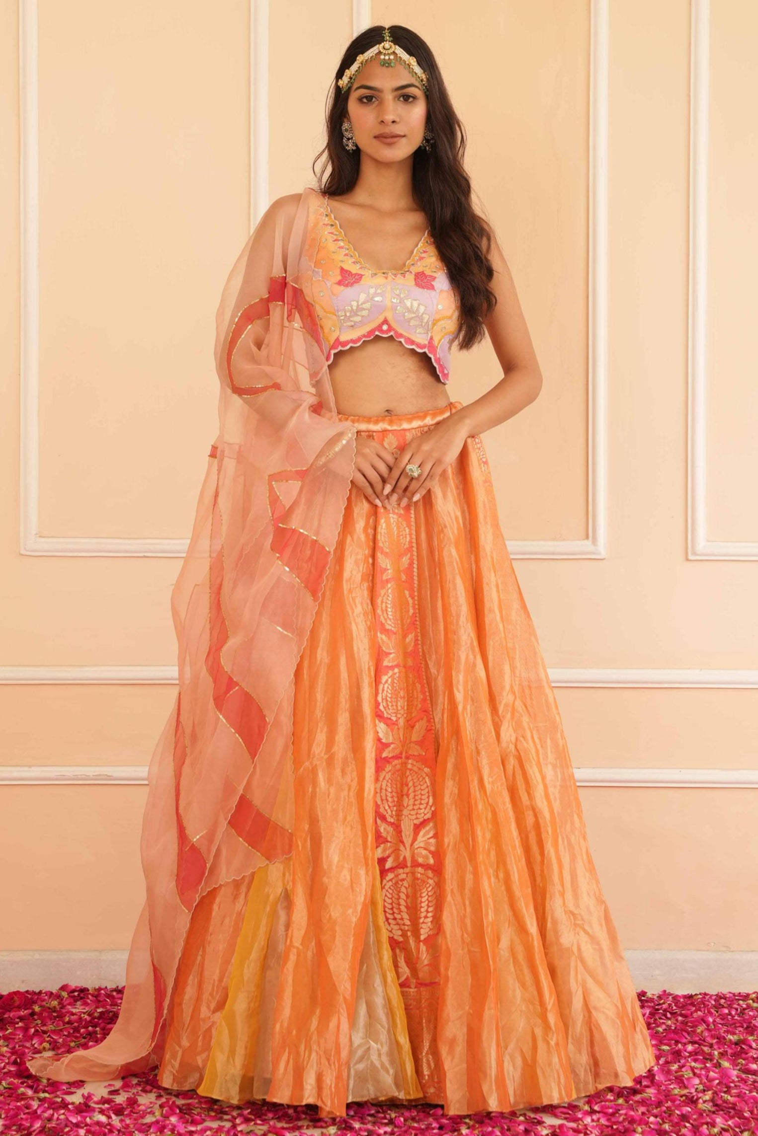 The Orange Dil Se Aisha Lehenga radiates joy, warmth, and spirited femininity. Designed in a bold marigold-orange hue, this lehenga is a celebration of brightness and tradition, brought to life with delicate embroidery and graceful movement. Inspired by the name Aisha, meaning "alive and well," this piece captures the essence of a woman who lights up every room she walks into—confident, radiant, and full of heart. Perfect for haldi ceremonies, festive mornings, or vibrant destination weddings. Style it with floral jewelry and sun-kissed makeup for a look that’s joyful, glowing, and deeply dil se.