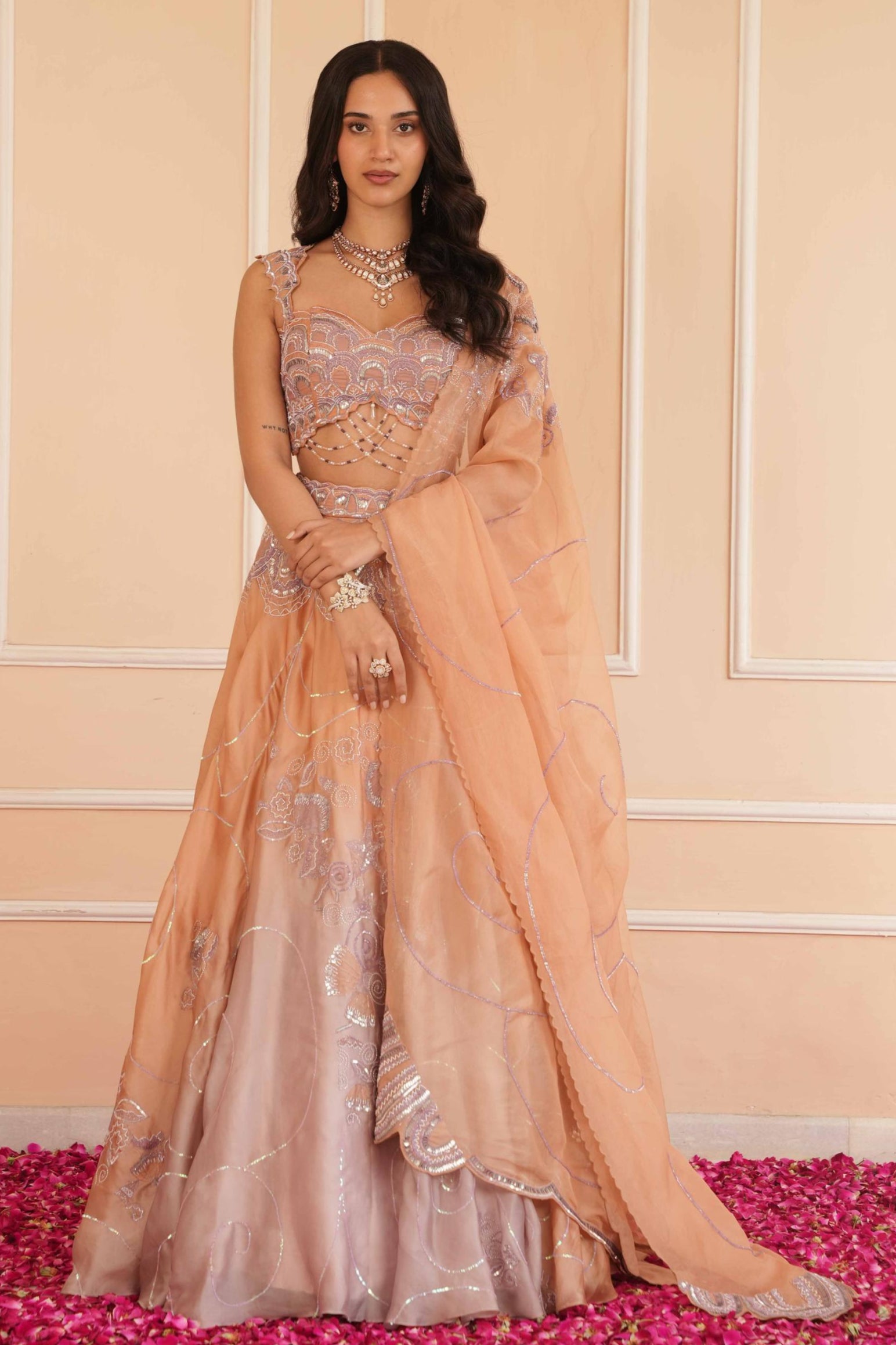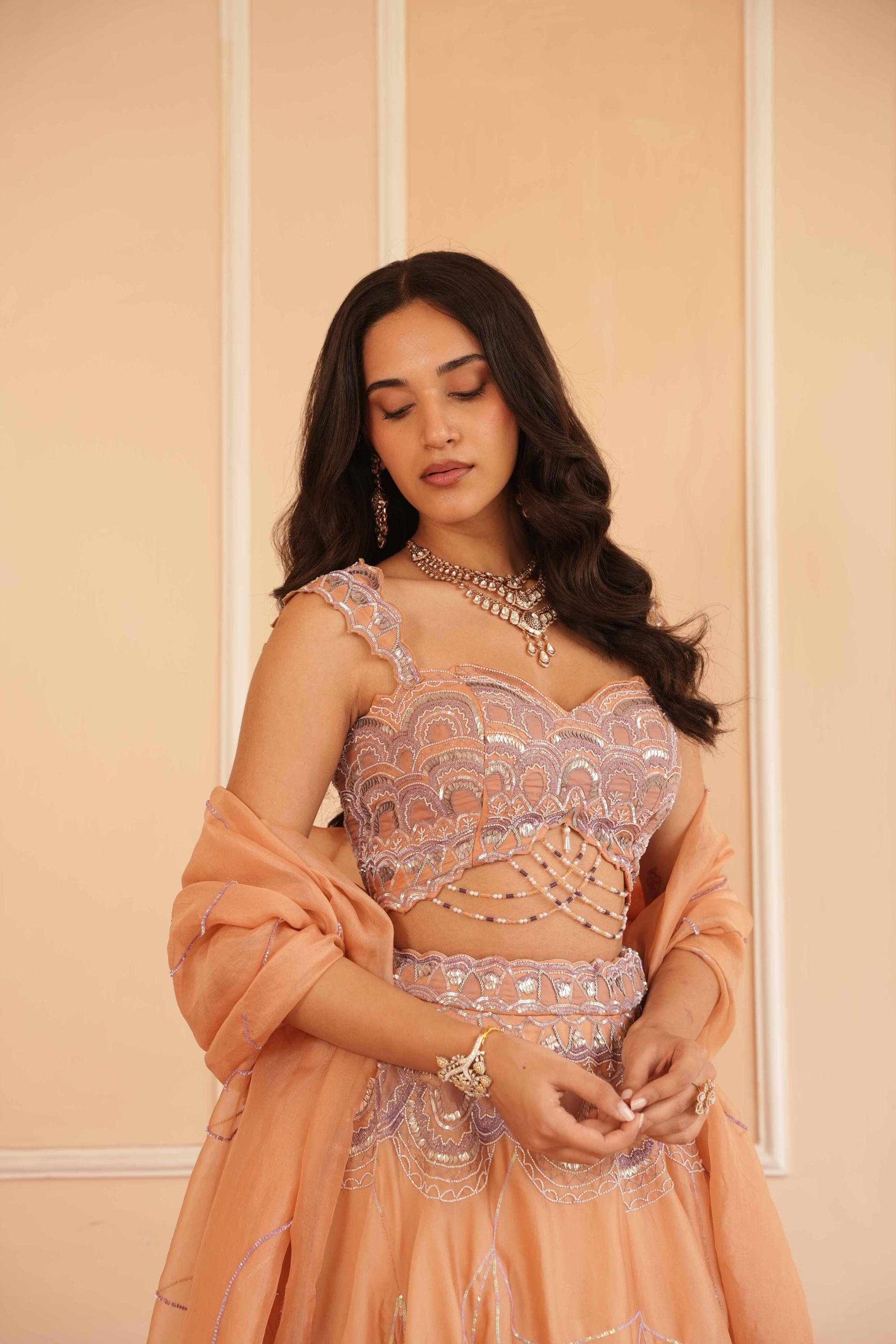 The Orange Dil Se Alohi Lehenga is a radiant expression of joy, light, and cultural warmth. Inspired by Alohi—a name that means “brilliant” or “shining”—this lehenga dazzles in a bright orange hue, symbolizing vitality and celebration. With handcrafted detailing and a silhouette that flows effortlessly, it’s designed for the spirited soul who celebrates tradition with fearless color and heartfelt presence. Perfect for haldi functions, destination weddings, or festive day events. Pair it with fresh marigold florals and golden jhumkas for a look that glows—boldly and beautifully dil se.