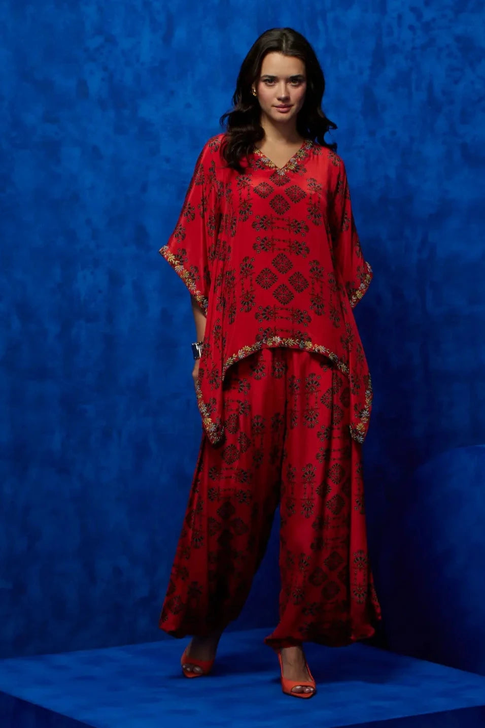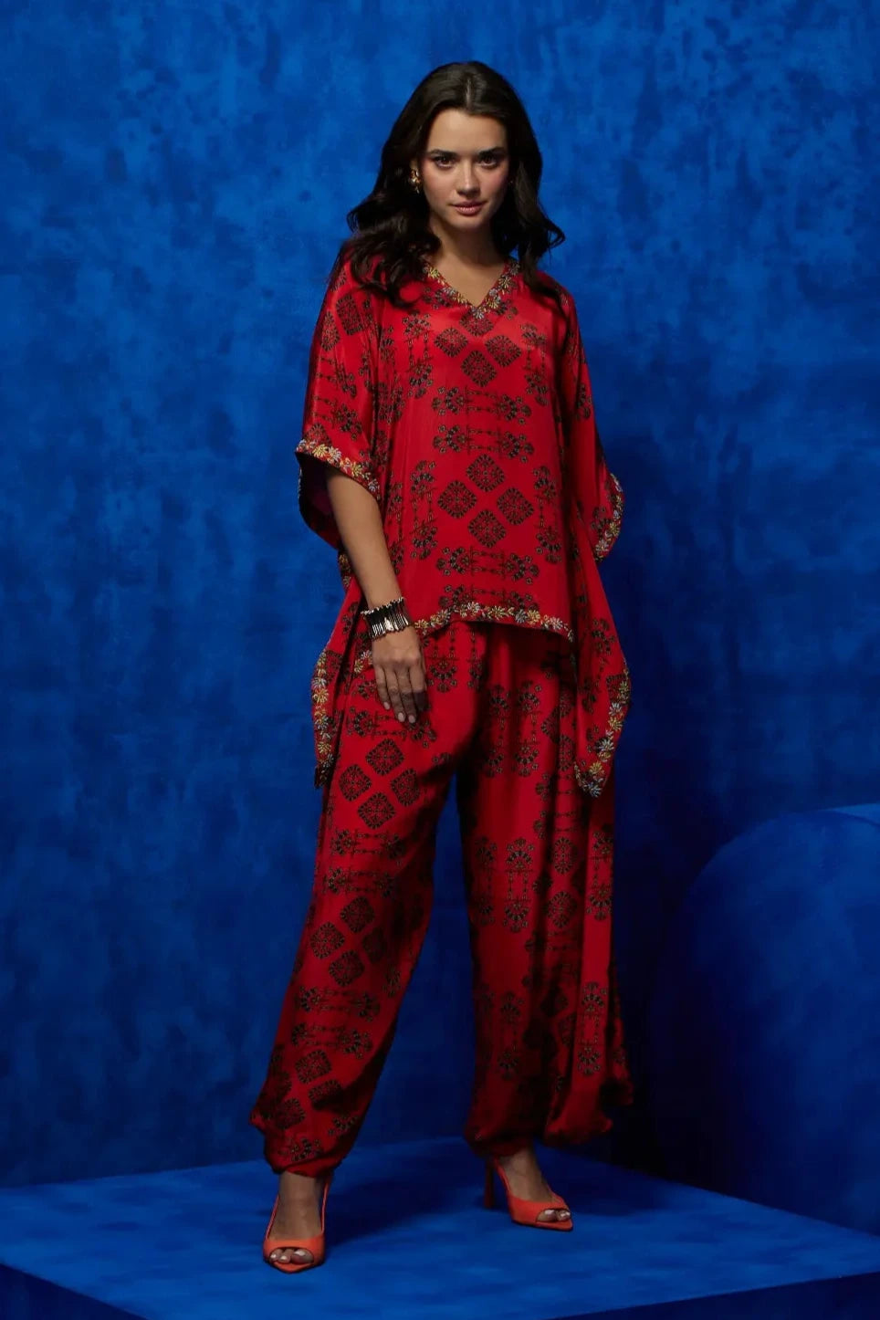 Add a pop of color and effortless style with this orange floral printed kaftan with pants. The vibrant orange hue and delicate floral print give the kaftan a fresh, summery vibe, while the loose, flowing silhouette offers ultimate comfort. Paired with matching pants, this chic ensemble is perfect for casual outings, beach vacations, or laid-back evening events, blending modern style with relaxed elegance.