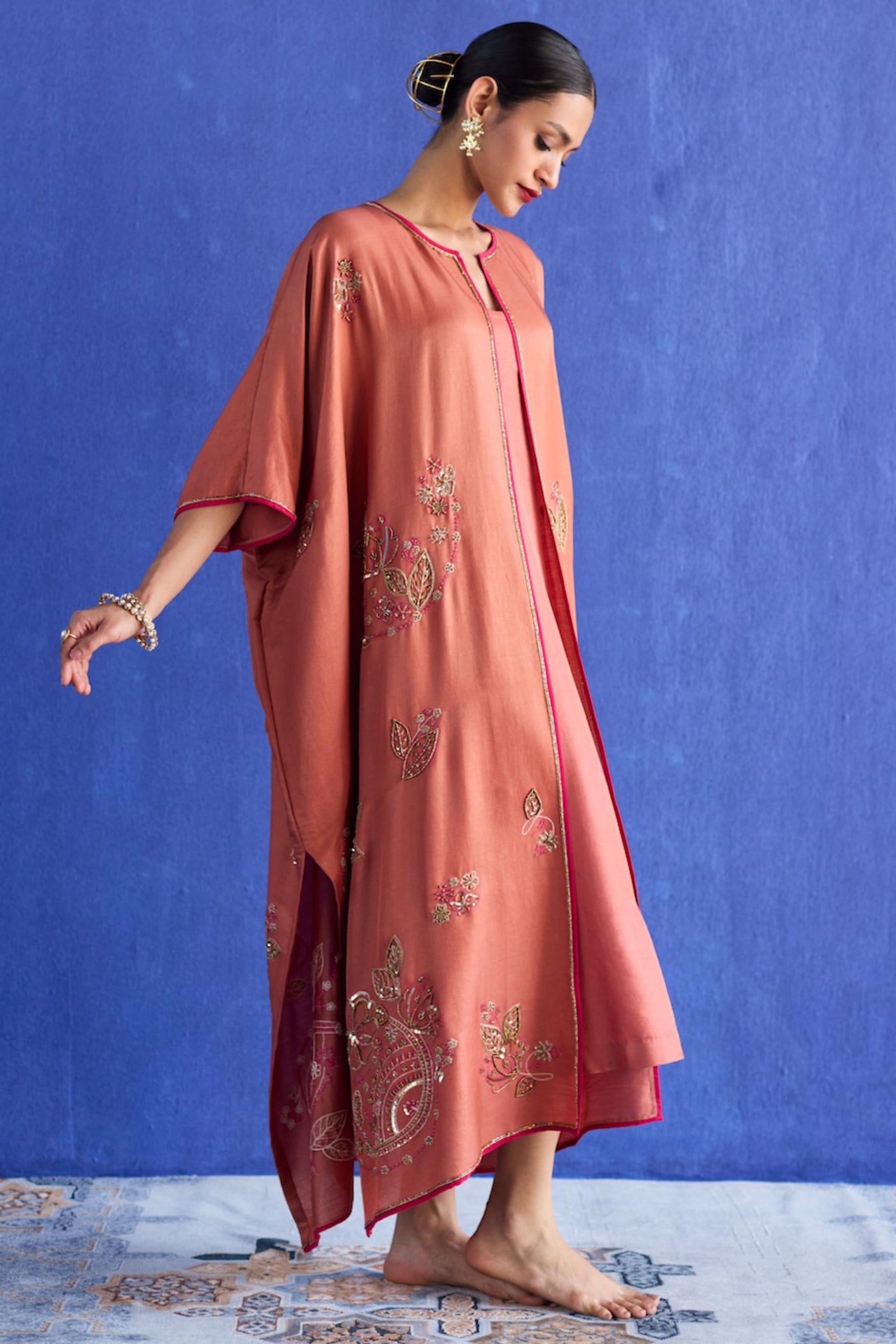 Due to the artisanal craftsmanship of our outfits, minor differences in color, embroidery, patterns, or fabric are expected and enhance their unique appeal. Actual colors may vary slightly due to screen settings and lighting.