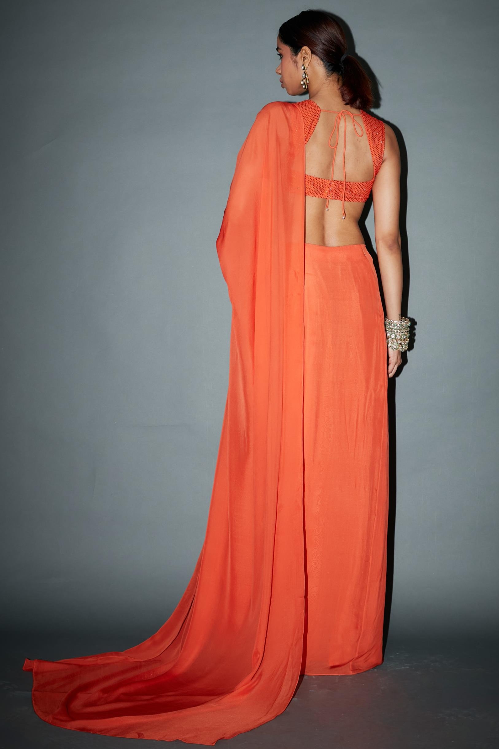 Embrace the vibrant spirit of Diwali with the Orange Maddeline Diwali Jaaneman Saree Set. This stunning ensemble features a bright rich orange saree paired with intricate detailing making it the perfect choice for festive celebrations. The elegant drape and flattering fit offer a timeless silhouette while the modern design elements bring a fresh twist to this traditional outfit. Perfect for Diwali gatherings parties and special events this saree set is sure to make you the center of attention with its captivating beauty.