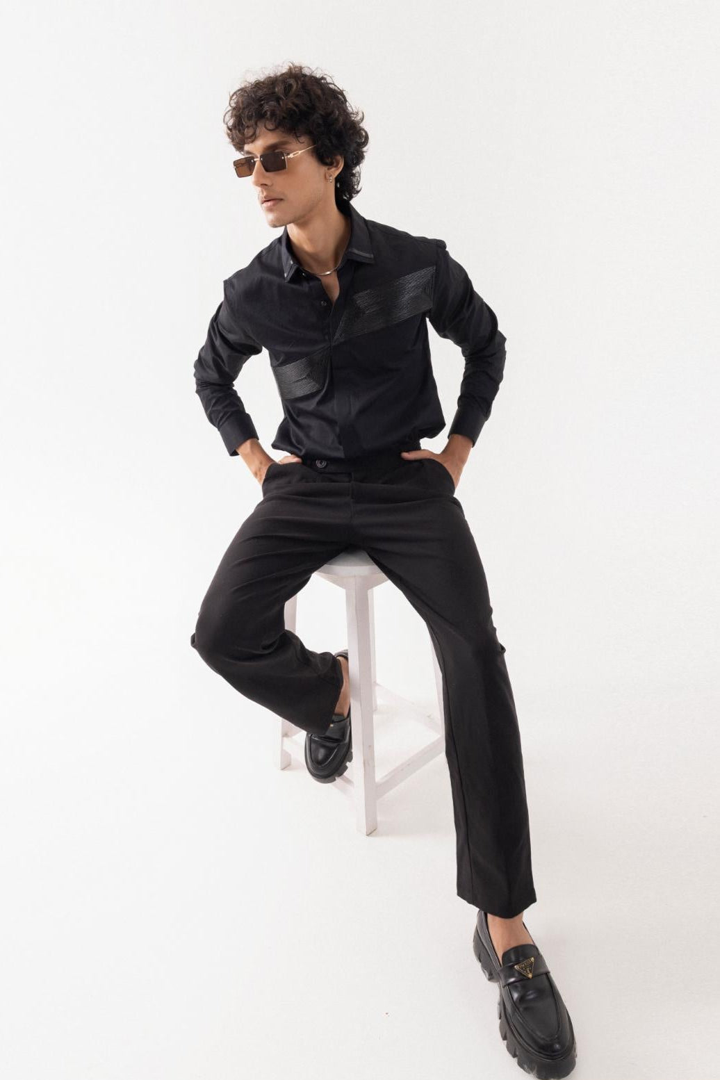 Paarsh’s Black Arva Leather Cord Arrow Full Sleeve Shirt is a refined yet edgy design for those who appreciate unique detailing. Crafted from breathable premium fabric, this full sleeve shirt combines everyday comfort with a modern statement look. The deep black hue enhances its versatility, while the leather cord arrow-inspired accents add a distinctive touch. Suitable for evening events, travel outings, or semi-formal gatherings, this shirt pairs effortlessly with trousers or denims. Paarsh’s commitment to quality tailoring ensures a perfect fit and long-lasting appeal. With its contemporary yet timeless aesthetic, the Black Arva Leather Cord Arrow Full Sleeve Shirt is an essential wardrobe piece for fashion-forward individuals seeking style with substance.
