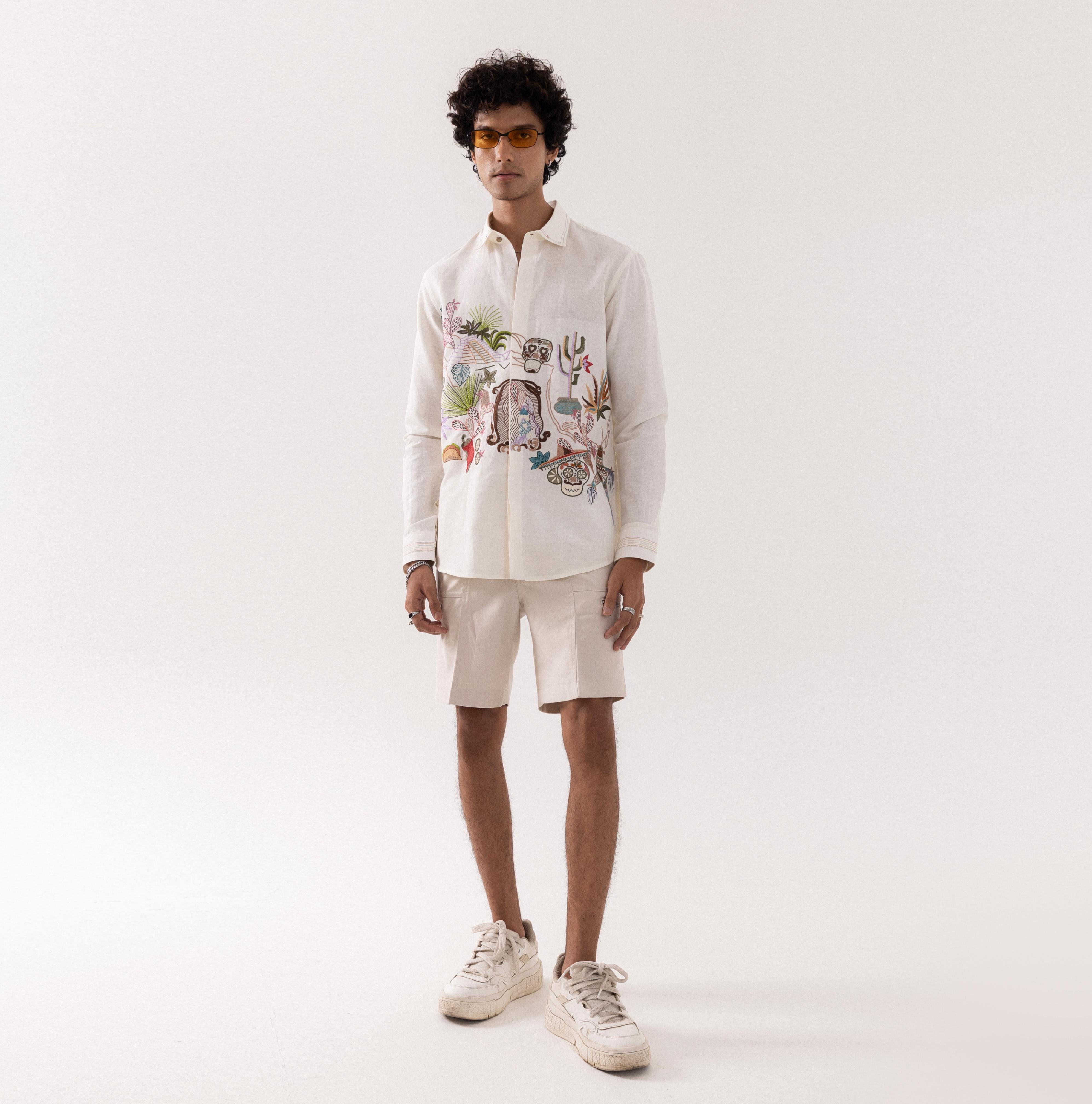 The Ivory Arva Mexican Full Sleeve Shirt by Paarsh is a versatile wardrobe staple that merges cultural charm with modern tailoring. Constructed with premium breathable fabric, this full sleeve shirt offers day-long comfort without sacrificing style. The ivory shade and Mexican-inspired detailing create a distinctive look that stands out in any setting. Whether paired with formal trousers for an elevated appearance or jeans for a casual day out, this full sleeve shirt transitions effortlessly across occasions. Paarsh’s signature craftsmanship ensures durability and a refined finish, making this full sleeve shirt an enduring addition to your collection. Designed for semi-formal events, festive celebrations, or everyday wear, the Ivory Arva Mexican full sleeve shirt is perfect for individuals who value both cultural influence and modern versatility. Make this full sleeve shirt your go-to choice for timeless style.