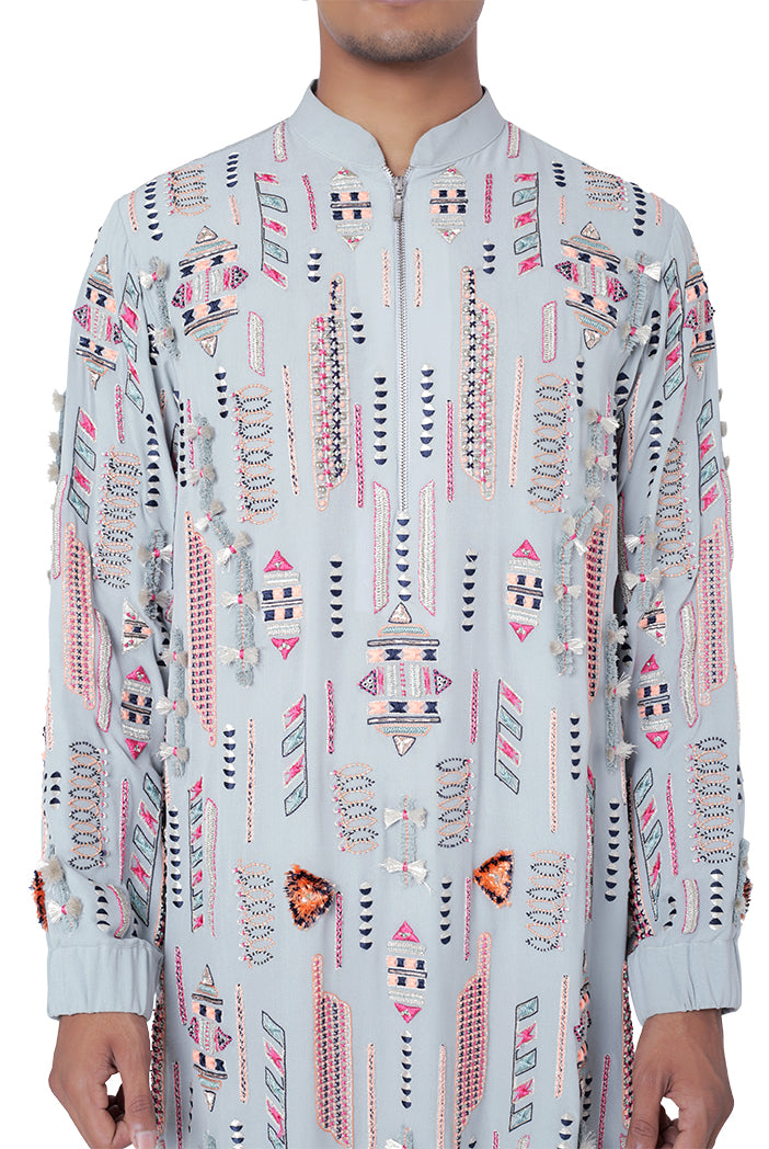 PS Men by Payal Singhal embraces contemporary Indian wear with a collection of sherwanis, bandi sets, bomber kurtas, jogger pant sets, silk kurta sets, and shirts in signature prints.