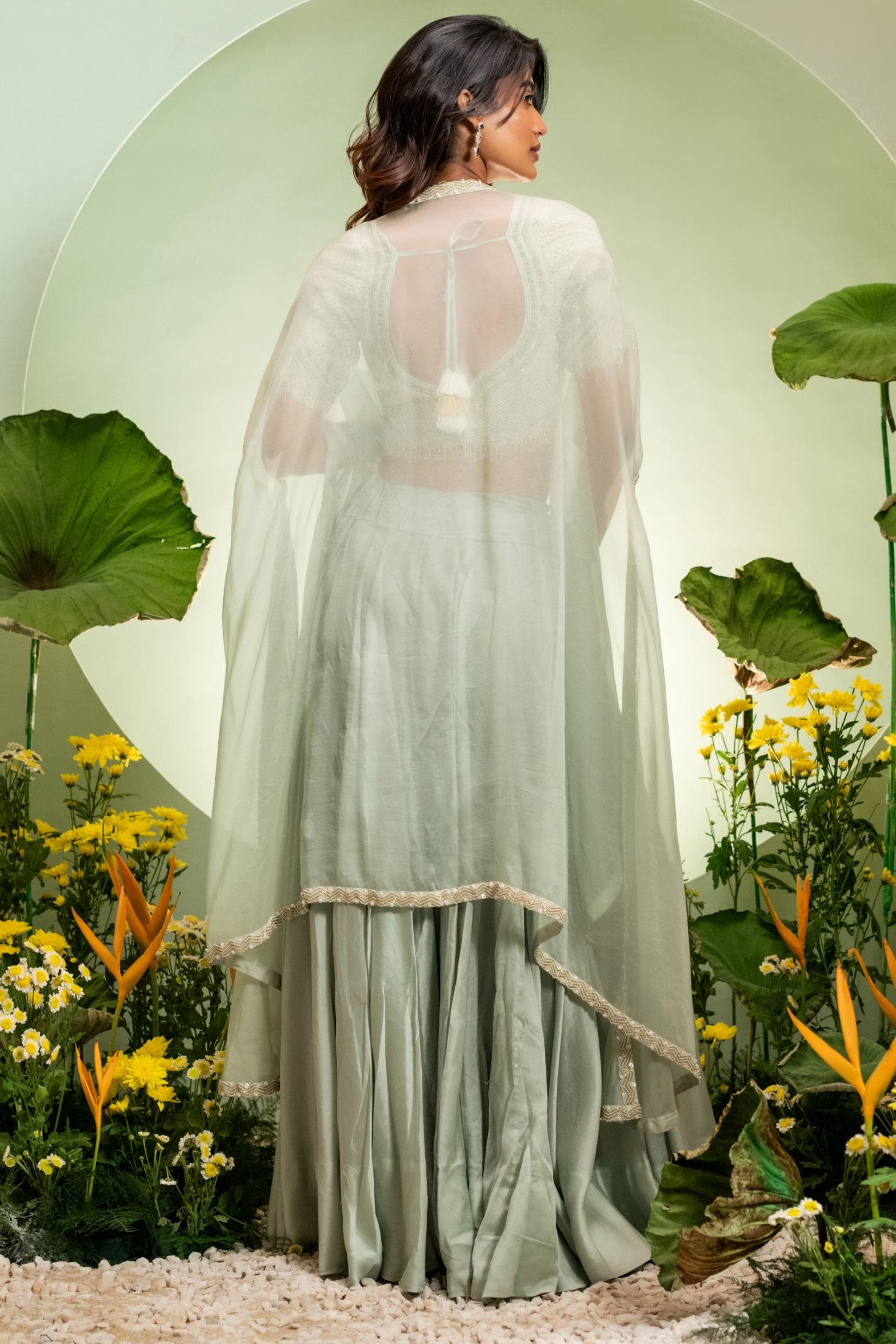 The Green Eden Satin Skirt Set is luxurious, soft, and perfect for evening festivities. The satin fabric brings natural sheen and fluidity, creating an elegant look suited for cocktail events, receptions, or night-time celebrations. This set is ideal for guests seeking something glamorous yet easy to wear without heavy embellishment.