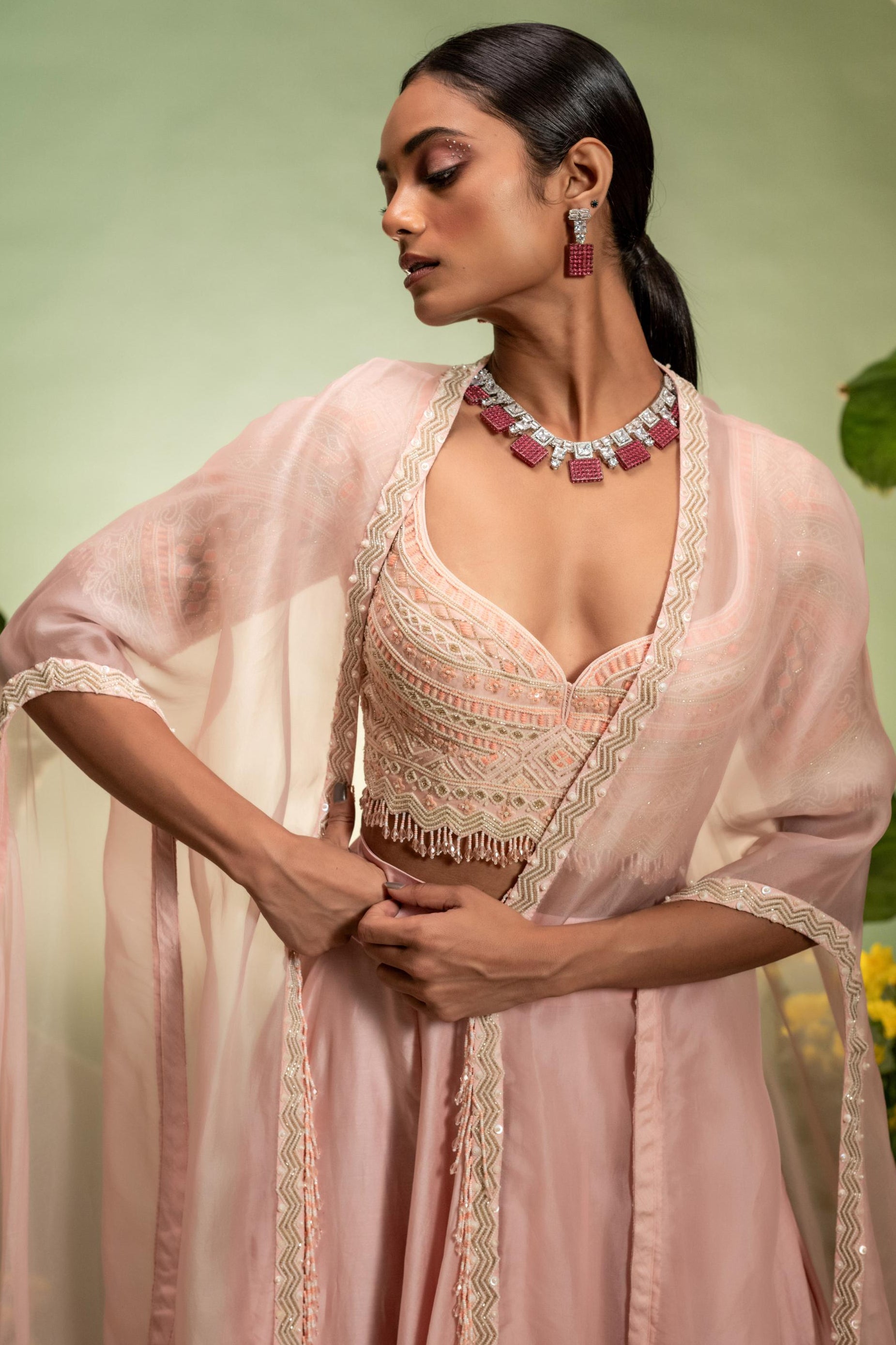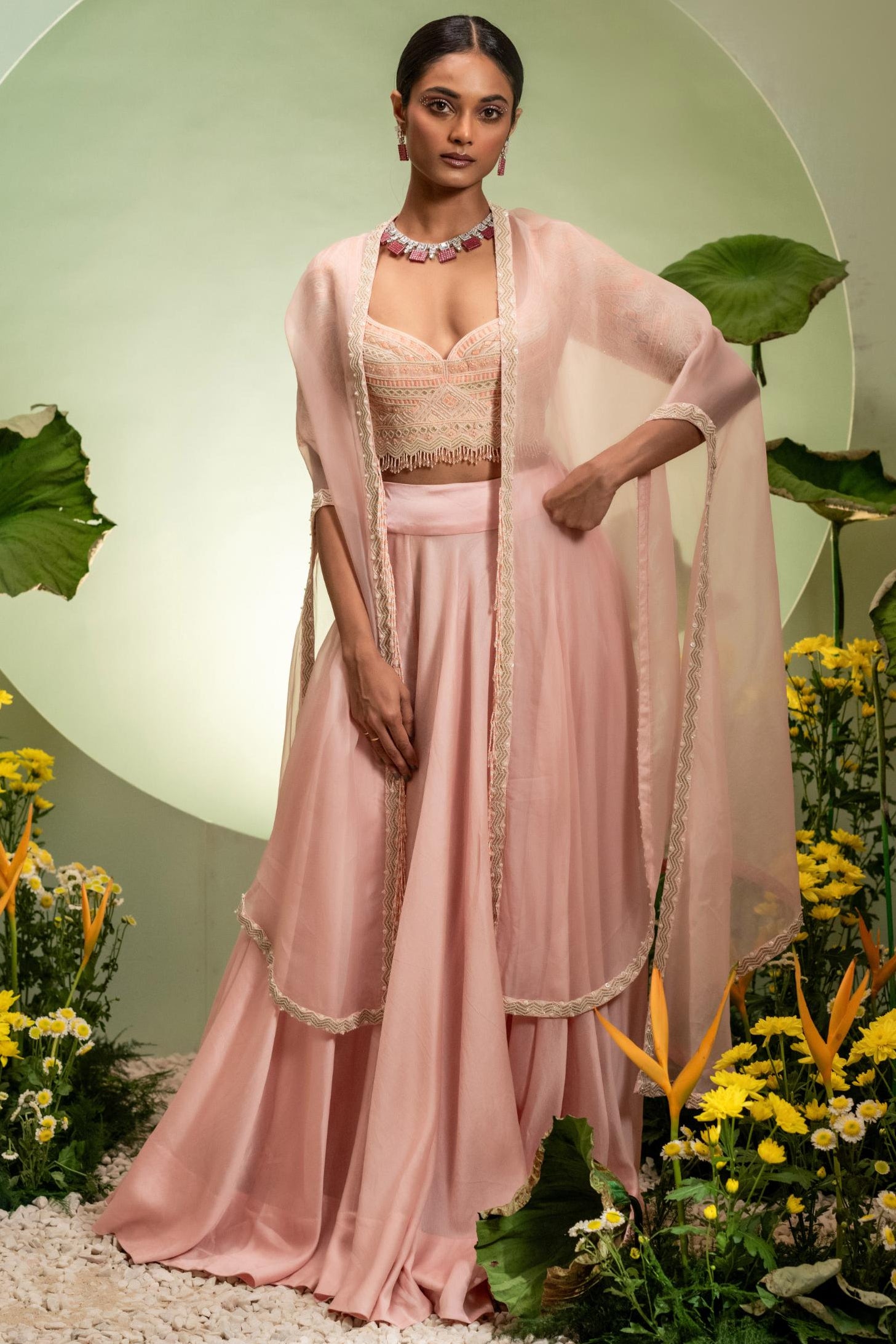 The Pink Eden Skirt Set is crafted to bring joyful elegance through its vibrant pink skirt set design. Ideal for mehendi ceremonies, festive brunches, or daytime celebrations, this pink skirt set offers a flattering silhouette with playful movement. The soft pink color enhances the charm of the pink skirt set, making it a delightful option for bridesmaids and guests. Lightweight construction keeps the pink skirt set comfortable throughout long events. Whether styled minimally or paired with bold accents, the pink skirt set maintains a fresh, feminine appeal. This pink skirt set is perfect for celebrations requiring color, comfort, and effortless grace.
