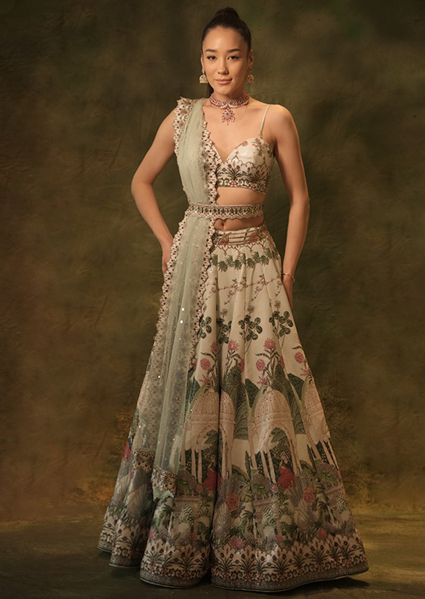 Components: 4 pieces (Lehenga, dupatta, belt, blouse)