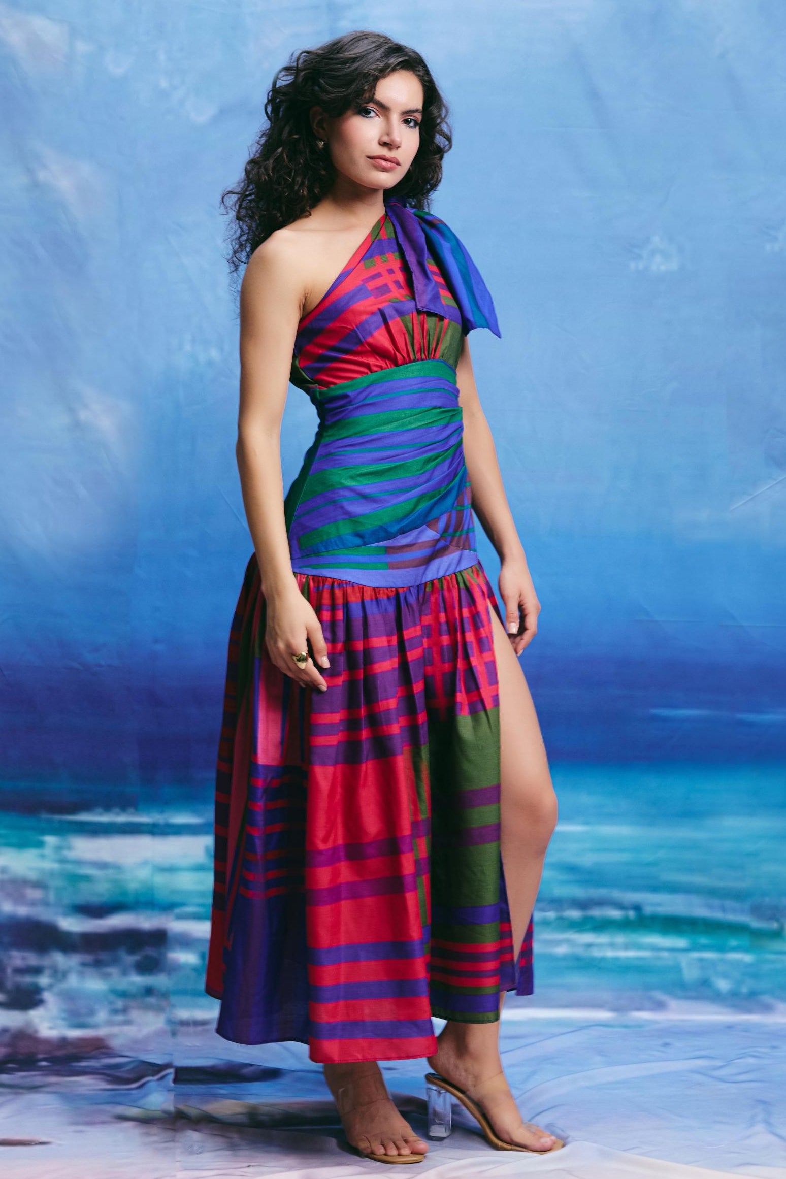 The Multicolor dew dress by Payal & Zinal features elegant draping and muted multicolor tones, making it perfect for summer events. This dress offers comfort and style, ideal for brunches, casual receptions, and garden parties. The flowing silhouette ensures ease of movement while the subtle patterning adds sophistication. Designed for contemporary wear, the Multicolor dew dress pairs beautifully with statement accessories or minimal jewelry. Lightweight and chic, this dress transitions effortlessly from day to evening occasions. Perfect for modern women who value style and versatility, the Multicolor dew dress is a wardrobe essential.